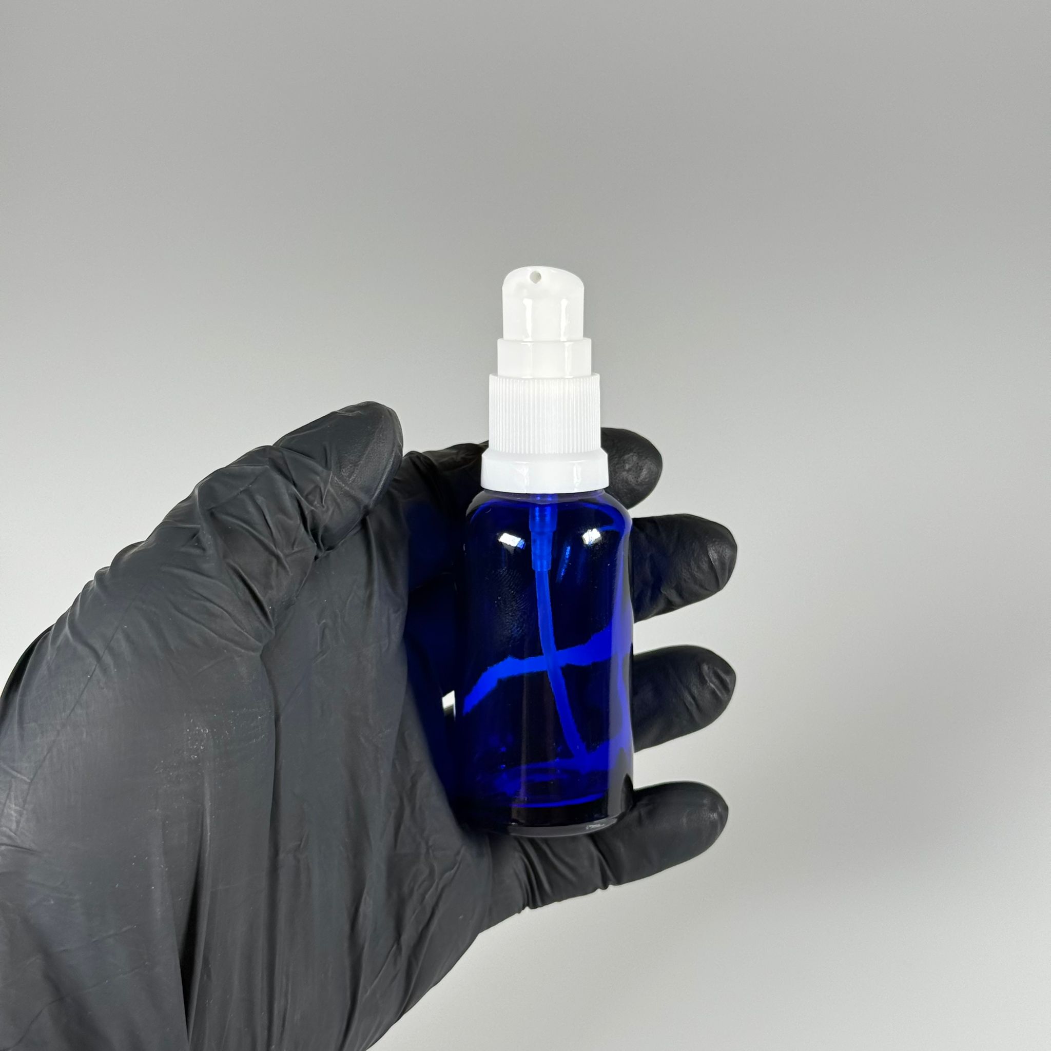 30 CC MAVİ CAM ŞİŞE - SIZDIRMAZ ETEKLİ BEYAZ LOSYON POMPALI TAKIM - 30 ML LOSYON ŞİŞESİ - YAĞ, KREM GİBİ YOĞUN KIVAMLI SIVILAR İÇİN CAM AMBALAJ