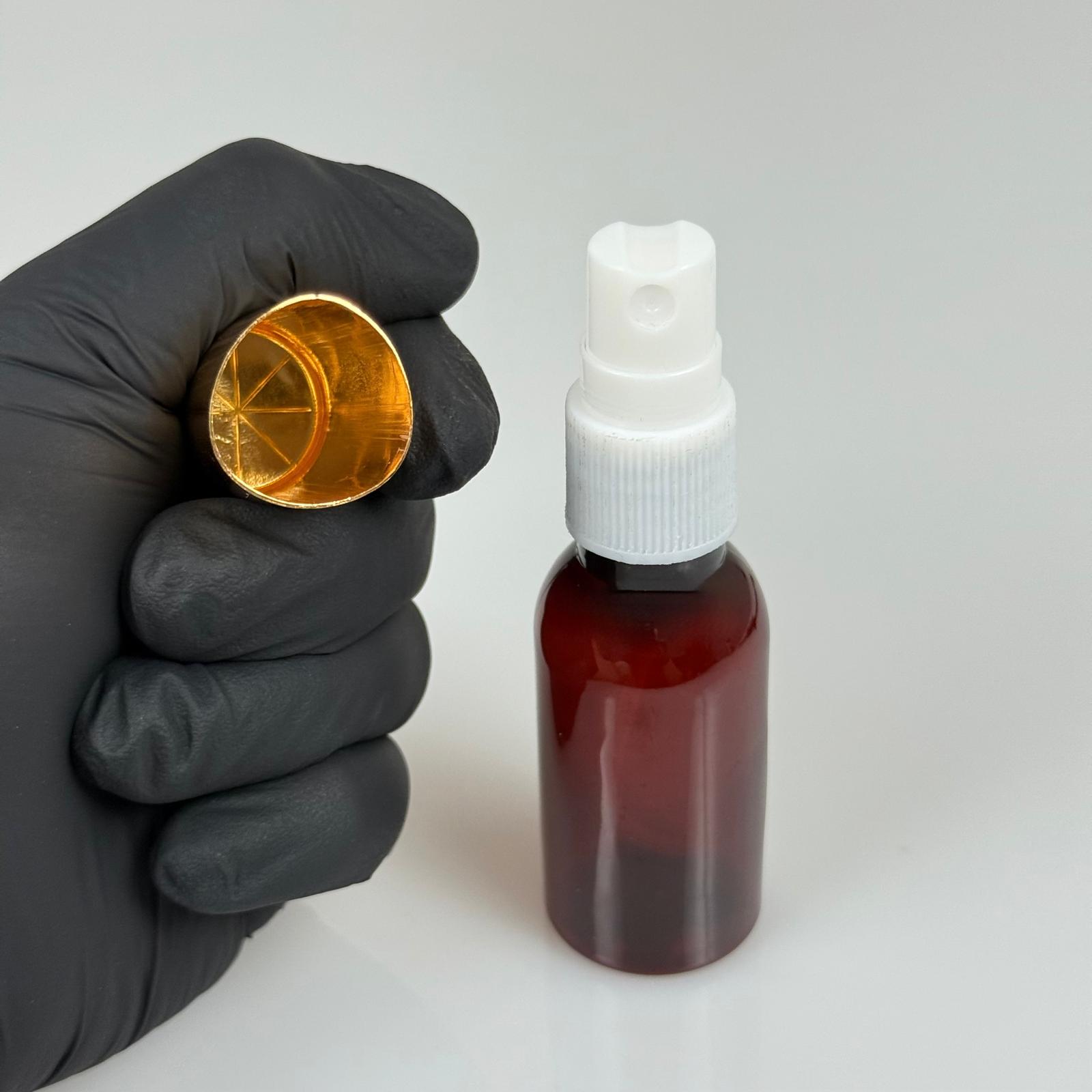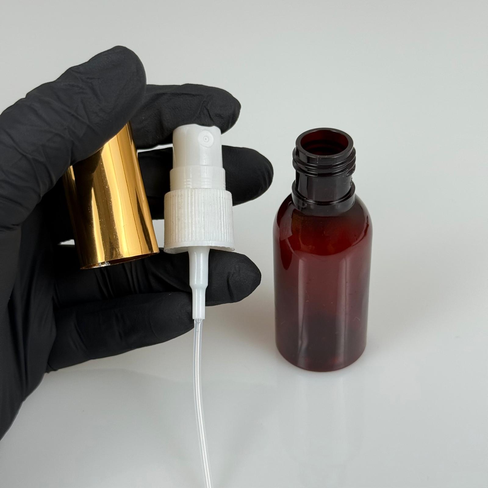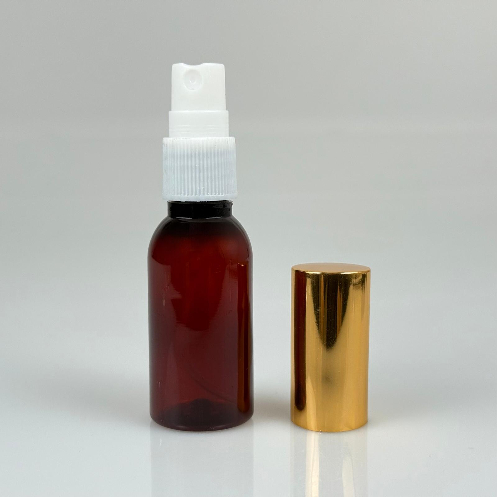 35 ML PET KOLONYA, PARFÜM VB ŞİŞELERİ - METAL ALÜMİNYUM GOLD KAPAK + VİDALI SPREY + 35 CC AMBER ŞİŞE SET TAKIM