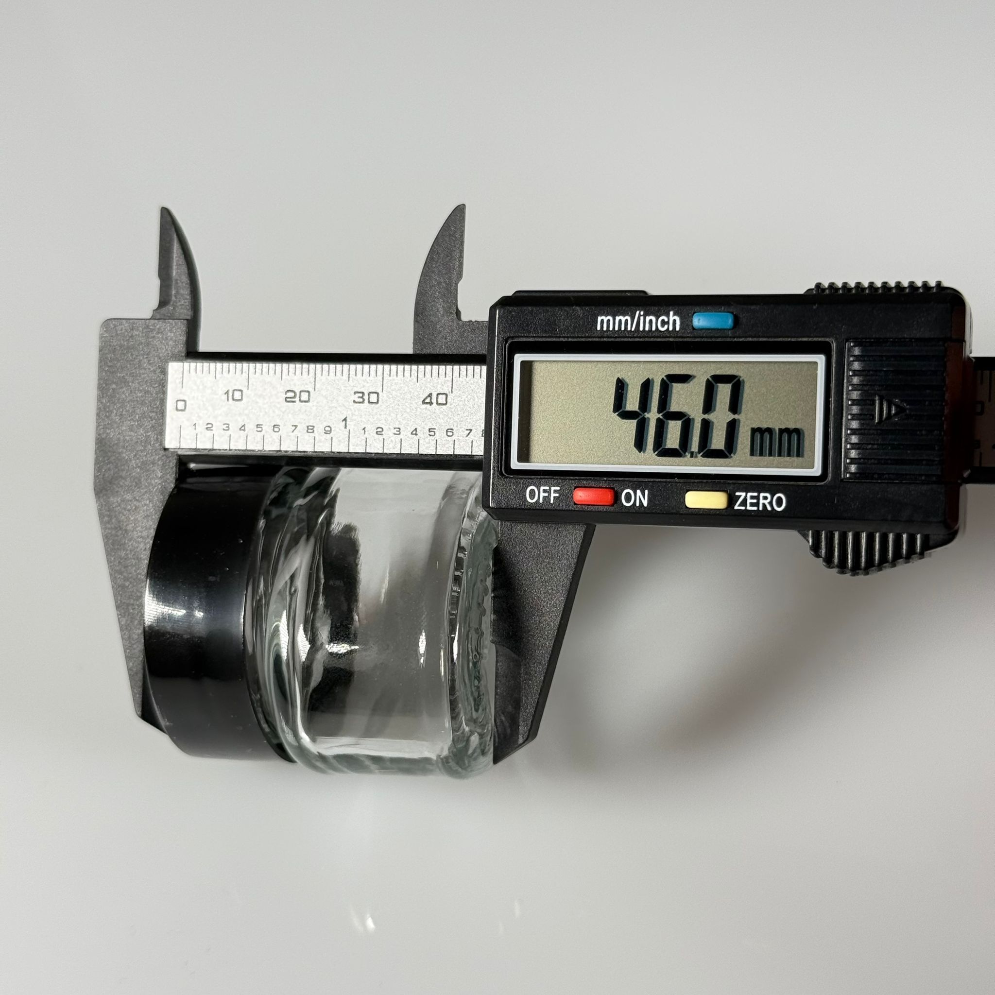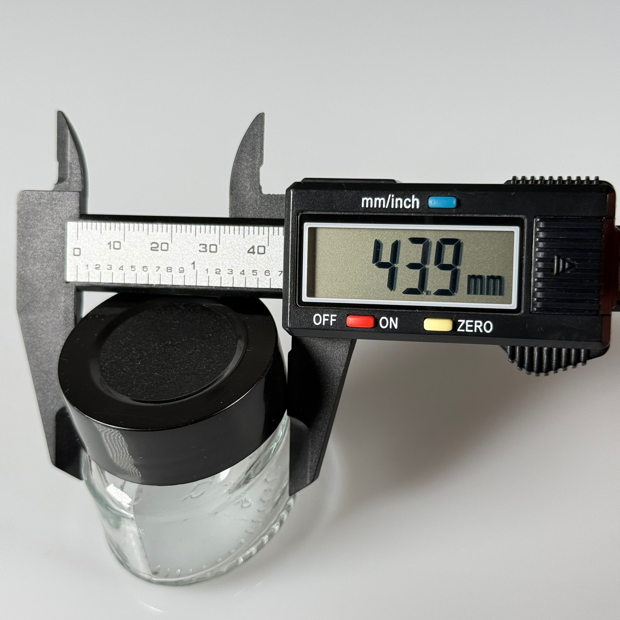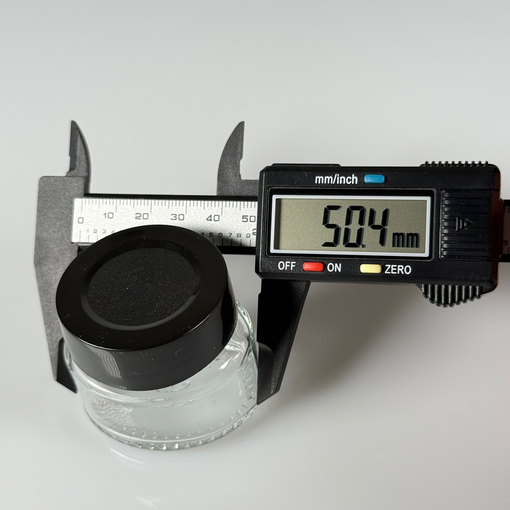 40 CC ELİPS OVAL CAM KAVANOZ - SİYAH PLASTİK DERİN ÜSTÜ KUMLAMA KAPAKLI + KENDİNDEN YAPIŞKANLI KÖPÜK CONTALI - 40 ML MİNİ KREM CAM KAVANOZLARI