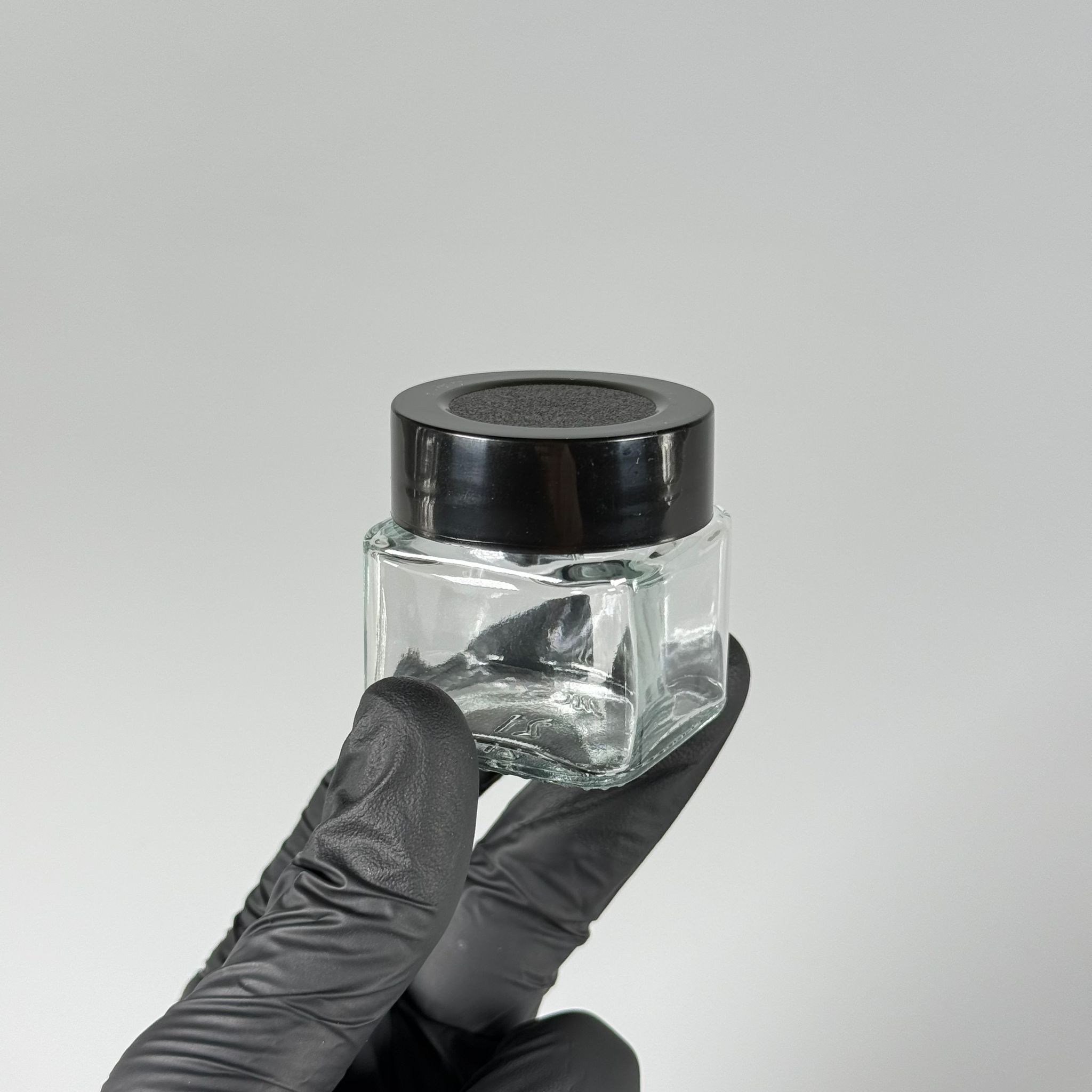 40 CC KARE CAM KAVANOZ - SİYAH PLASTİK DERİN ÜSTÜ KUMLAMA KAPAKLI + KENDİNDEN YAPIŞKANLI KÖPÜK CONTALI - 40 ML MİNİ KREM CAM KAVANOZLARI