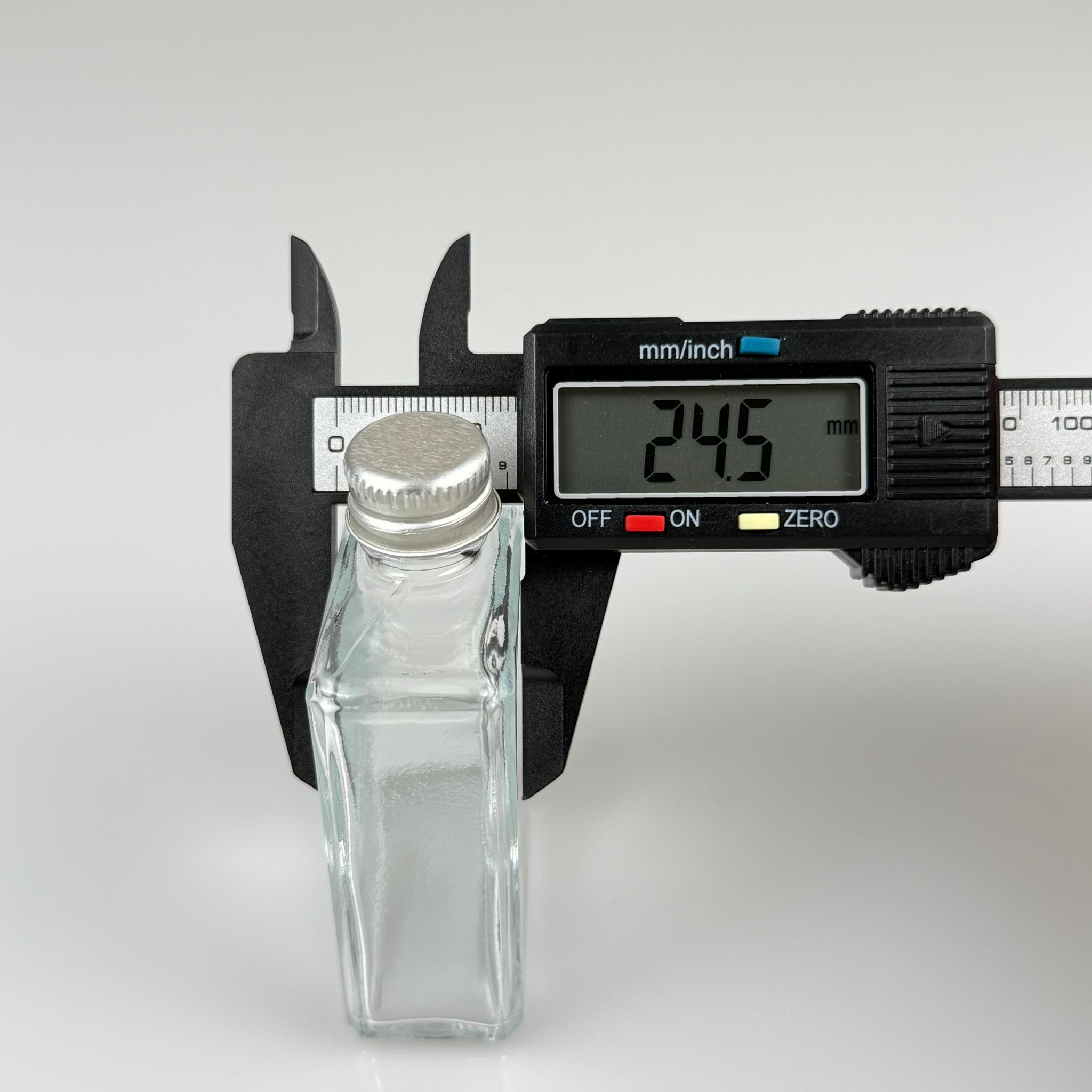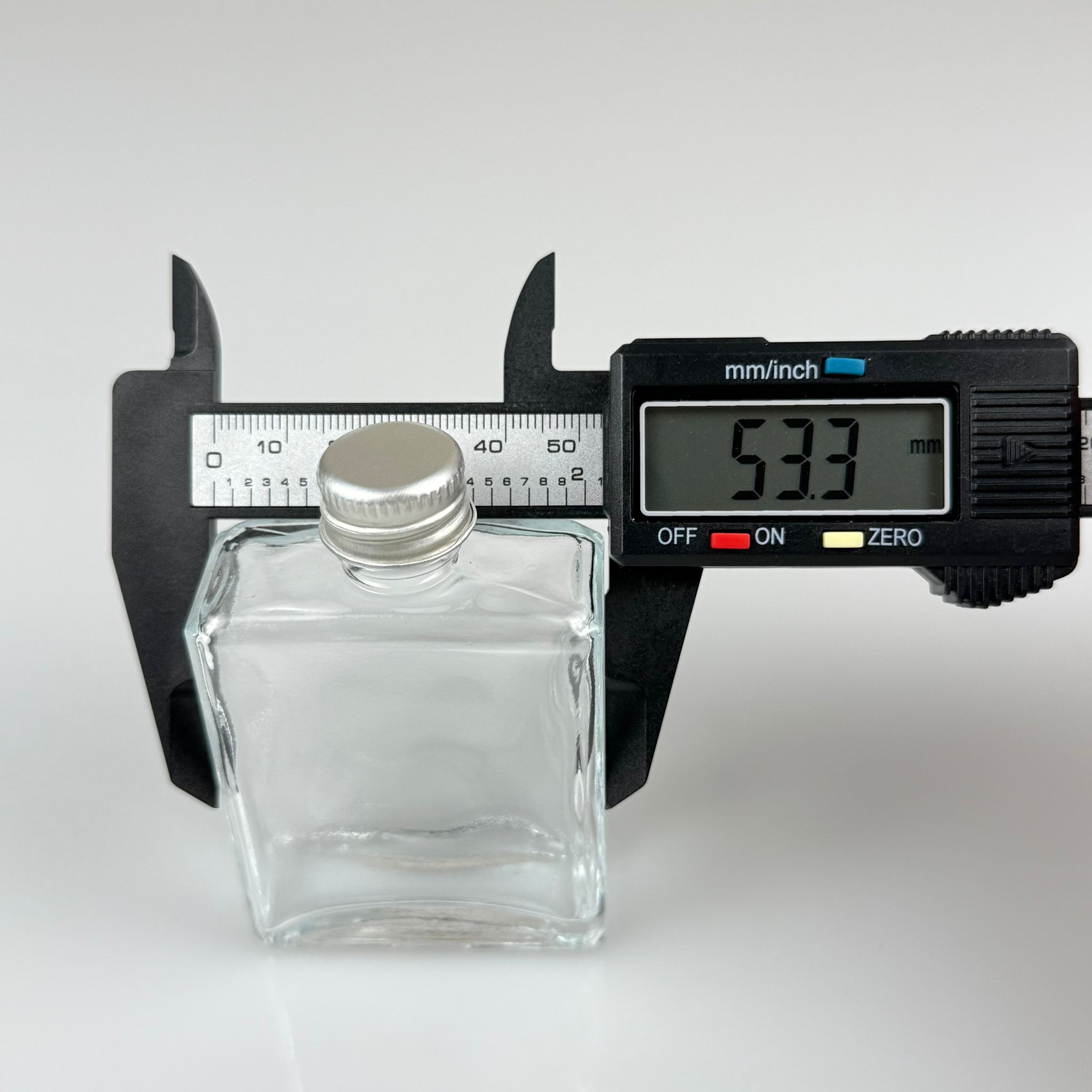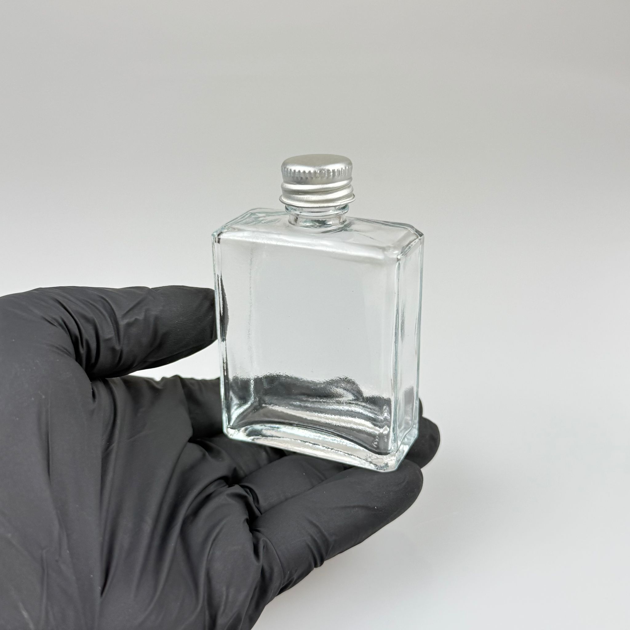 40 CC YASSI DİKDÖRTGEN KÖŞELİ KISA CAM ŞİŞE - GÜMÜŞ METAL KAPAKLI - 40 ML PRESTİJLİ ŞİŞE
