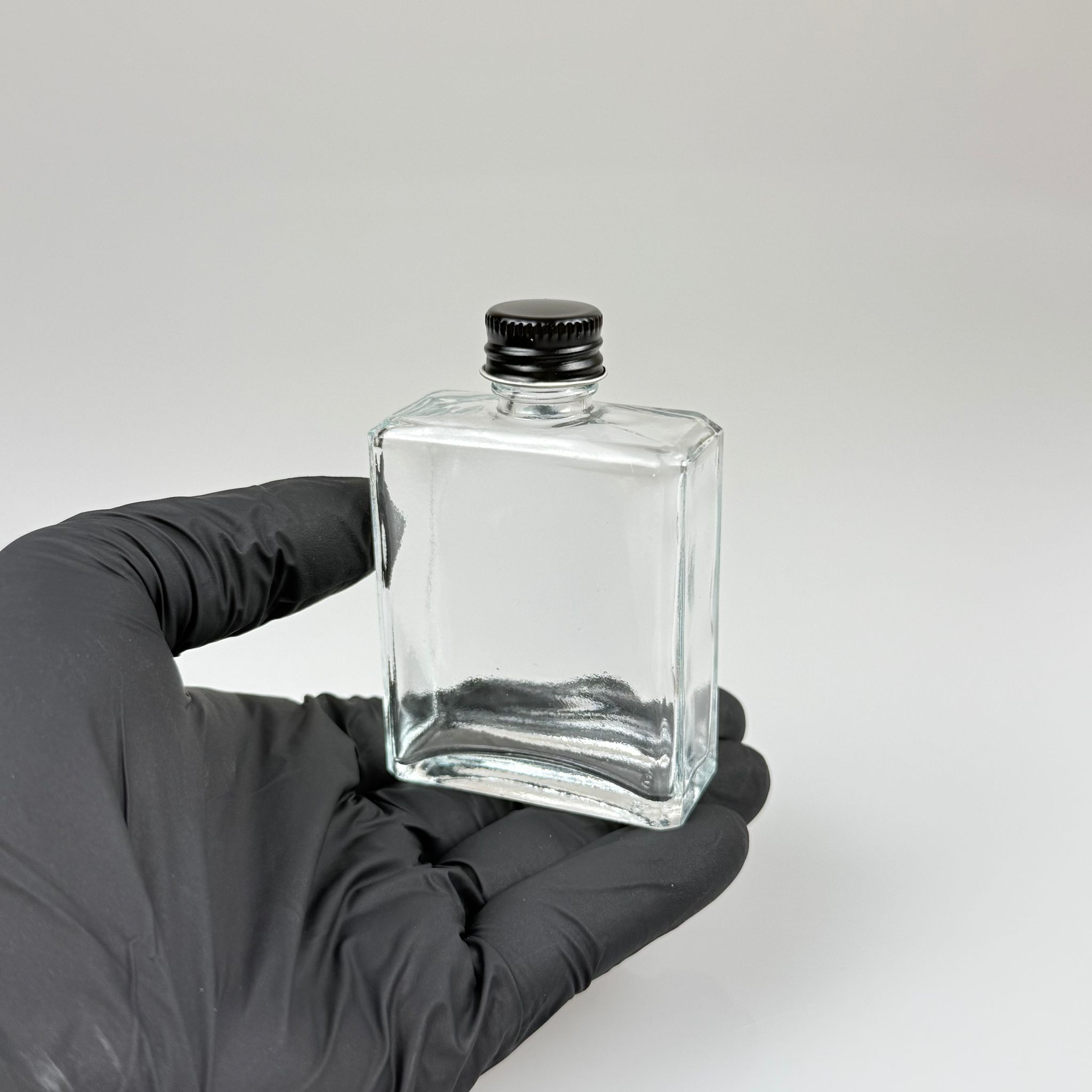 40 CC YASSI DİKDÖRTGEN KÖŞELİ KISA CAM ŞİŞE - SİYAH METAL KAPAKLI - 40 ML PRESTİJLİ ŞİŞE