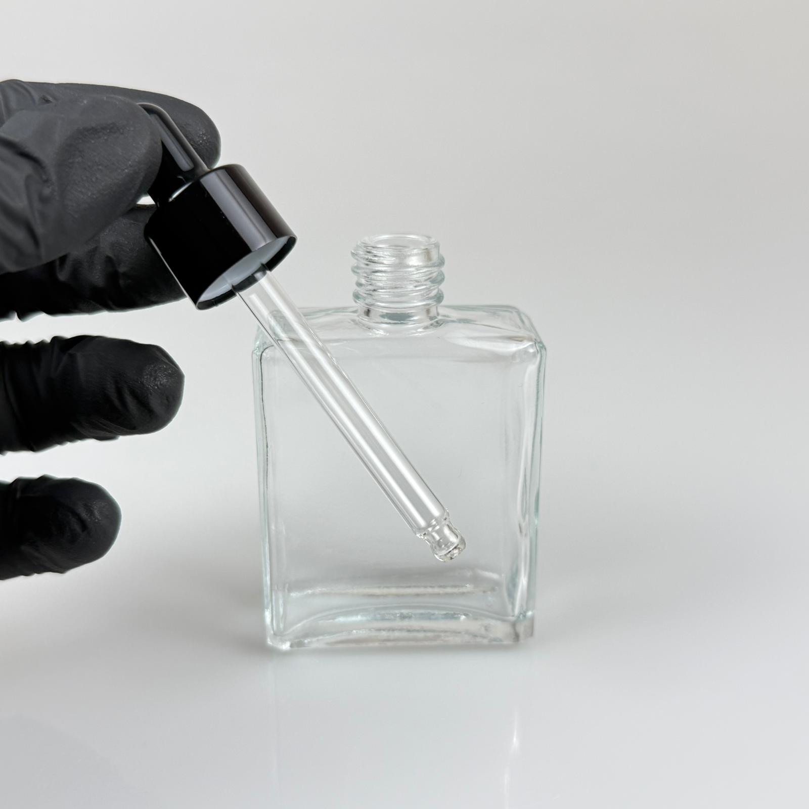 40 CC YASSI DİKDÖRTGEN KÖŞELİ KISA PRESTİJLİ CAM DAMLALIKLI ŞİŞE - SİYAH EMZİK - SİYAH METALİK KAPAK - 40 ML CAM DAMLALIKLI ŞİŞE - DAMLALIKLI BOŞ ŞİŞE