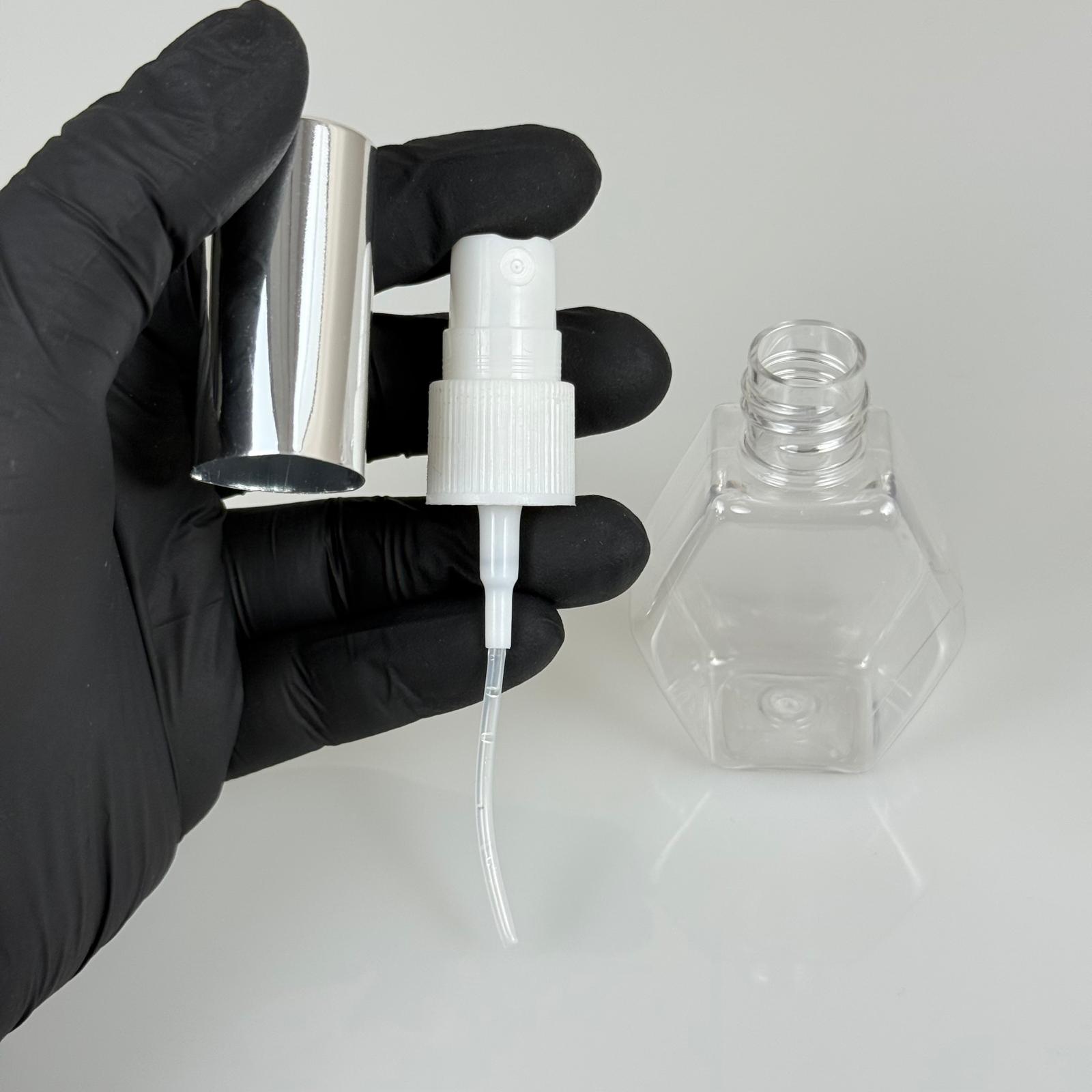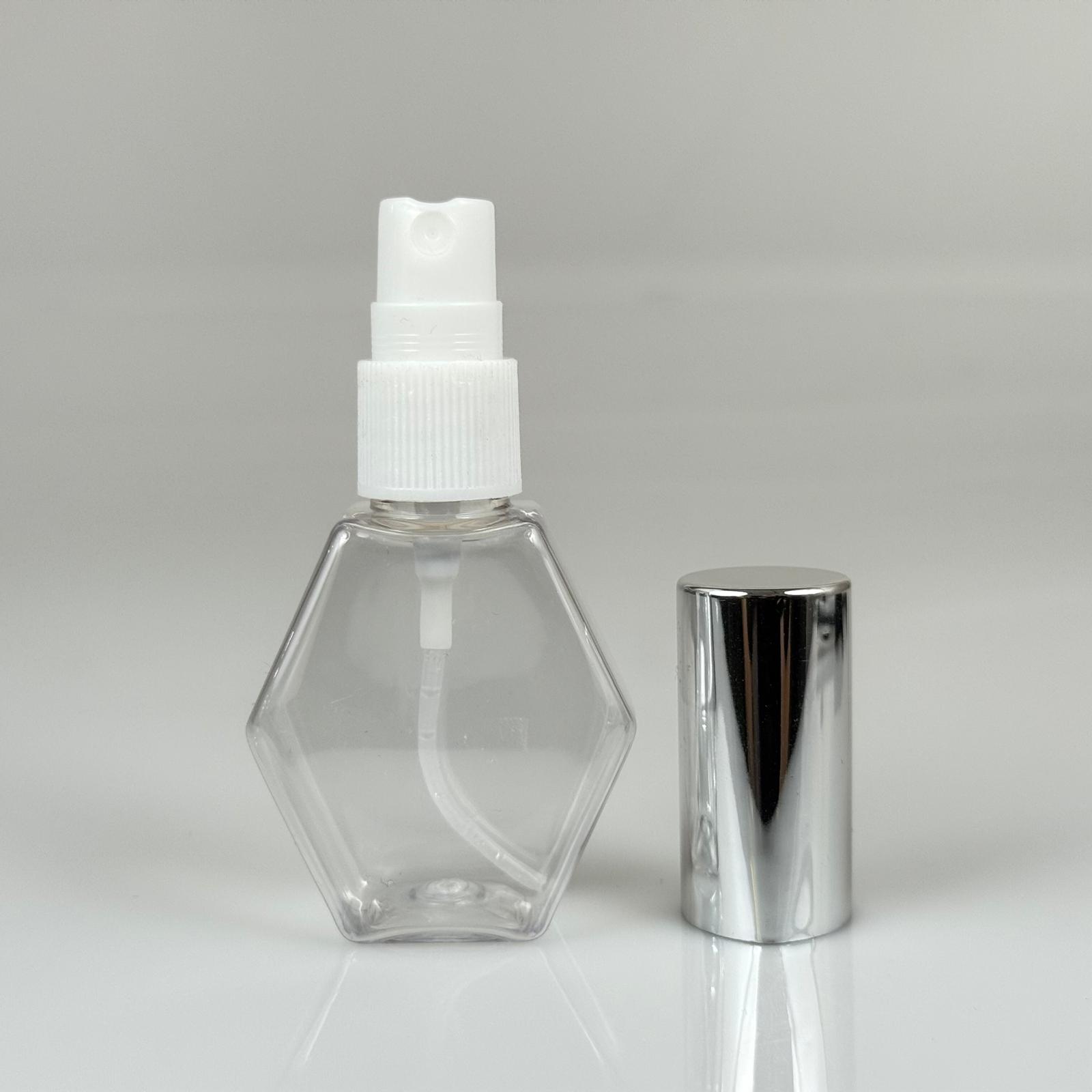 40 ML PET KOLONYA, PARFÜM VB ŞİŞELERİ - METAL ALÜMİNYUM GÜMÜŞ KAPAK + VİDALI SPREY + 40 CC ALTIGEN ŞİŞE SET TAKIM