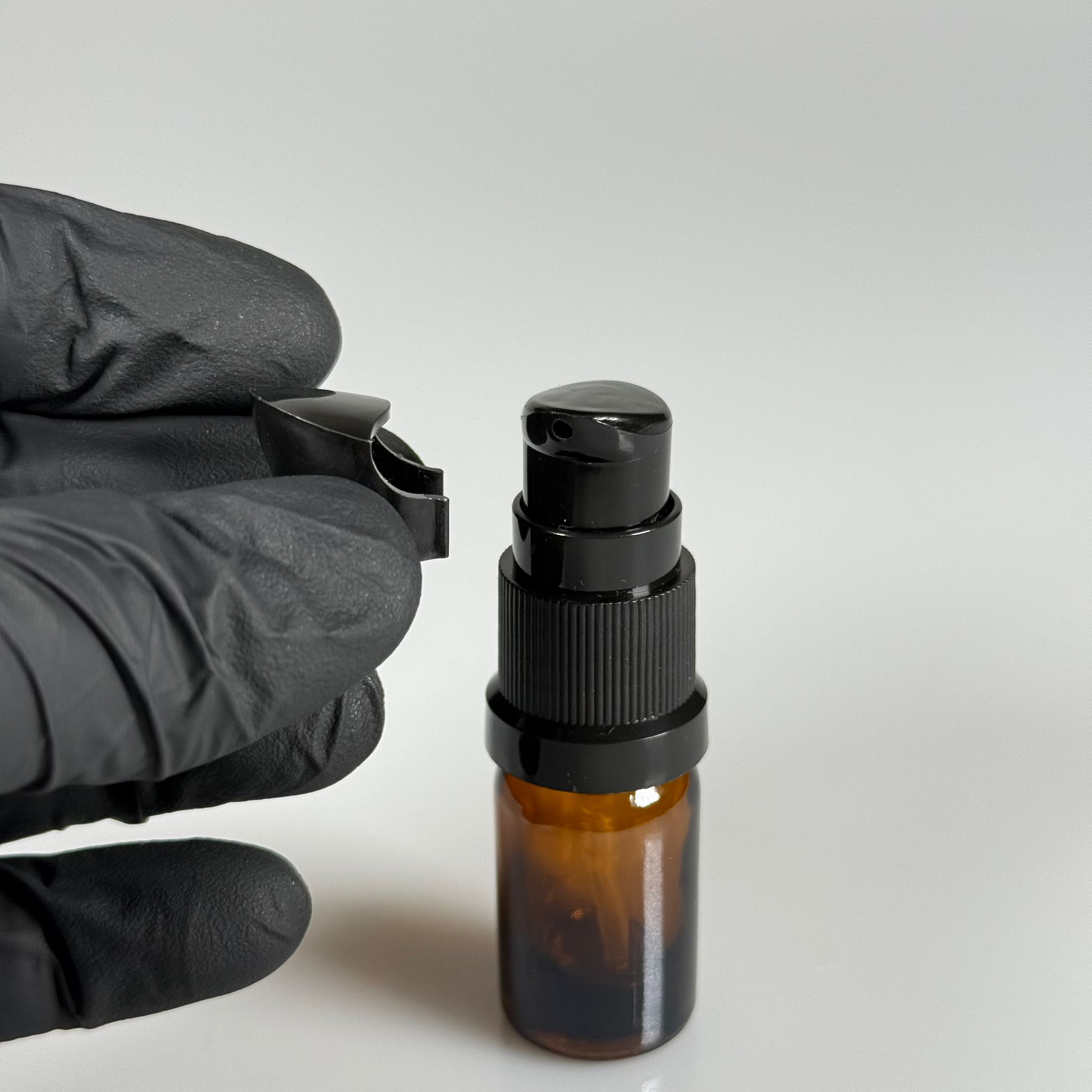 5 CC AMBER CAM ŞİŞE - SIZDIRMAZ ETEKLİ SİYAH LOSYON POMPALI TAKIM - 5 ML LOSYON ŞİŞESİ - YAĞ, KREM GİBİ YOĞUN KIVAMLI SIVILAR İÇİN CAM AMBALAJ