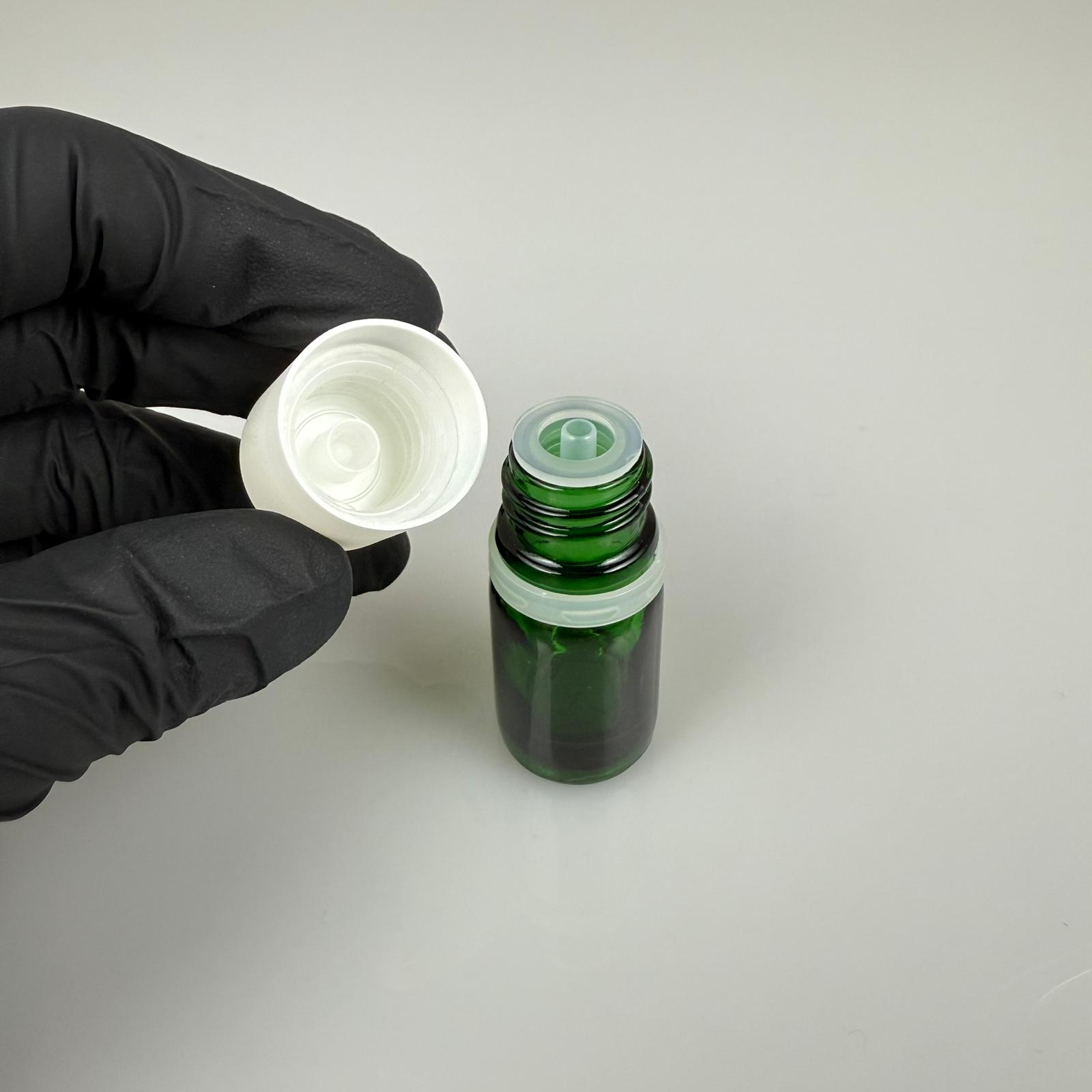 5 CC YEŞİL CAM ŞİŞE + İÇTEN DAMLALIKLI ÇOCUK KİLİTLİ BEYAZ KAPAK - YEŞİL 5 ML KİLİT KAPAKLI DAMLATMALI ŞİŞE