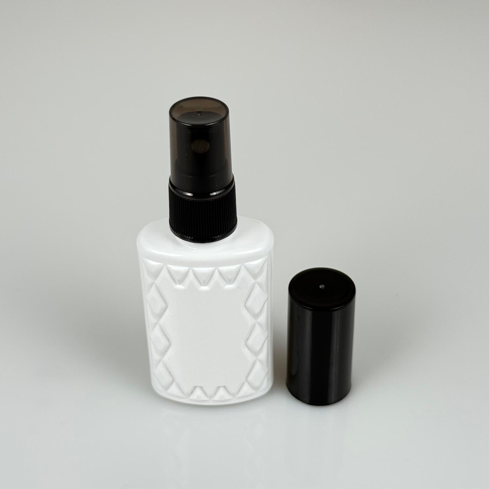 50 CC BEYAZ PET KÖŞELİ PARFÜM ŞİŞESİ - SİYAH SPREYLİ - SİYAH KORUMA KAPAKLI - 50 ML PLASTİK PARFÜM - KOLONYA ŞİŞESİ