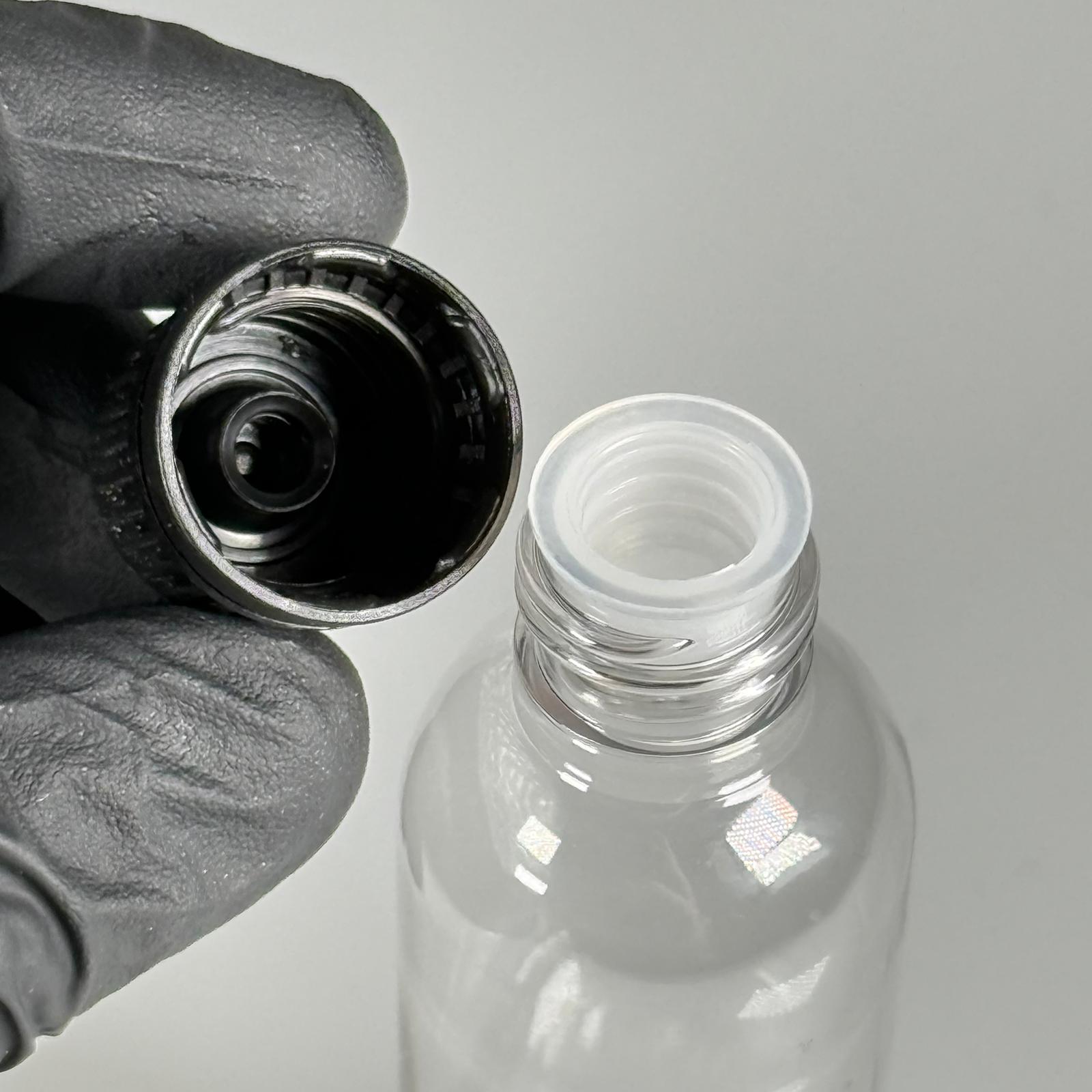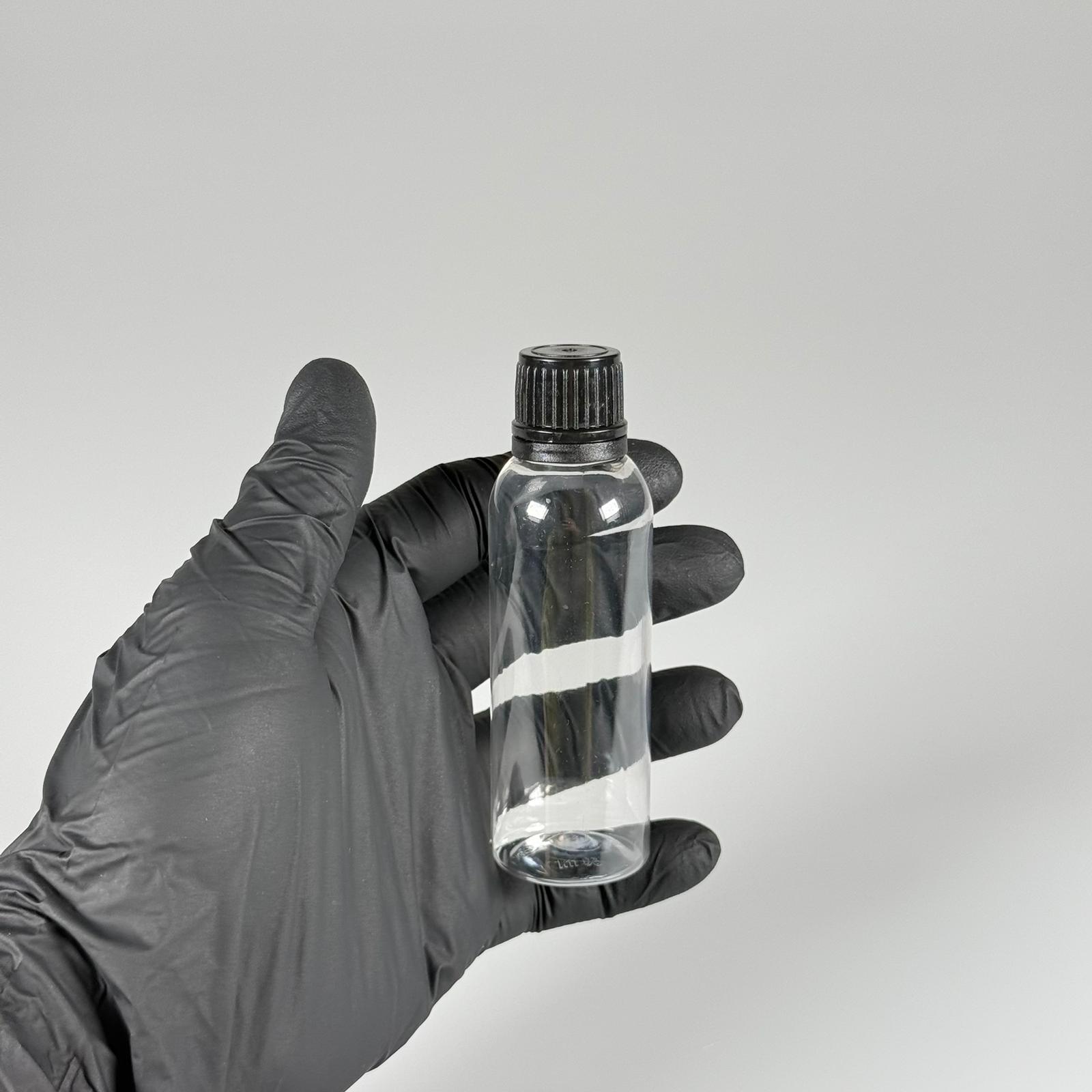 50 CC KALIN ŞEFFAF PET ŞİŞE (8 GR) - SİYAH KAPAKLI + KÖR TIPALI - 50 ML PLASTİK ŞİŞE