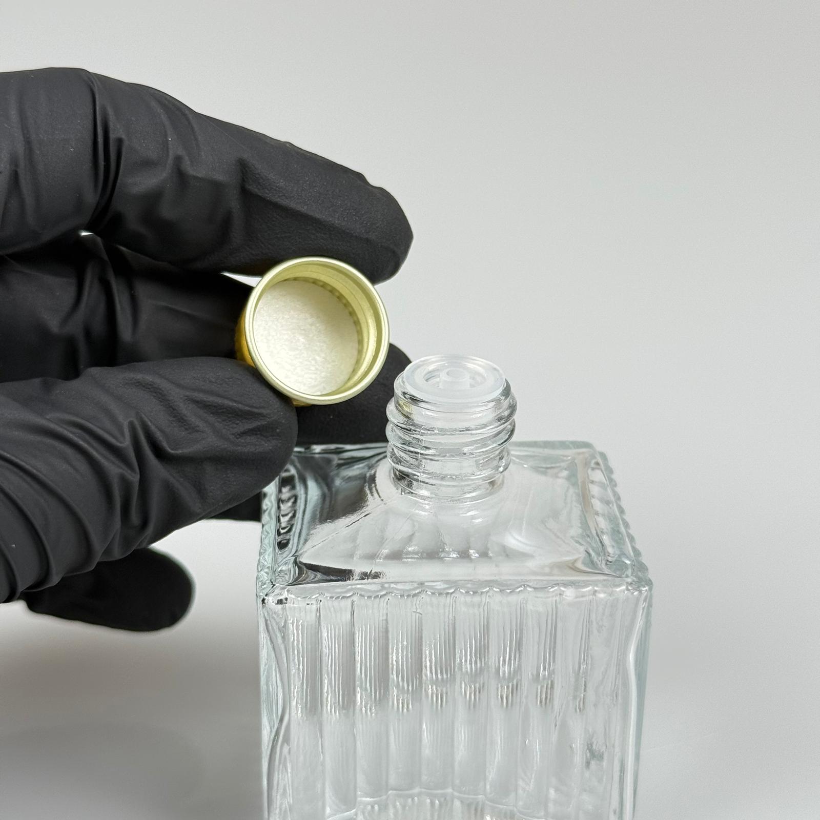 50 CC KÖŞELİ DESENLİ ÇİZGİLİ CAM ŞİŞE - GOLD METAL KAPAKLI KOLONYA TIPALI - 50 ML PRESTİJLİ ŞİŞE