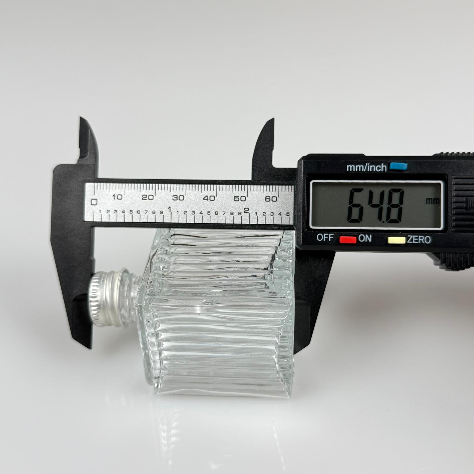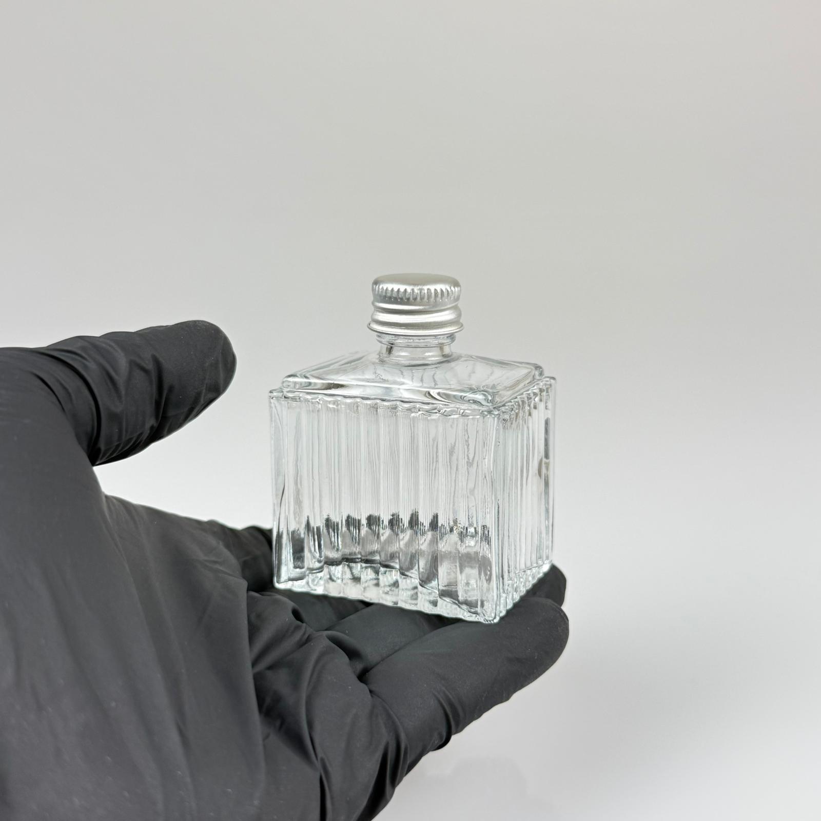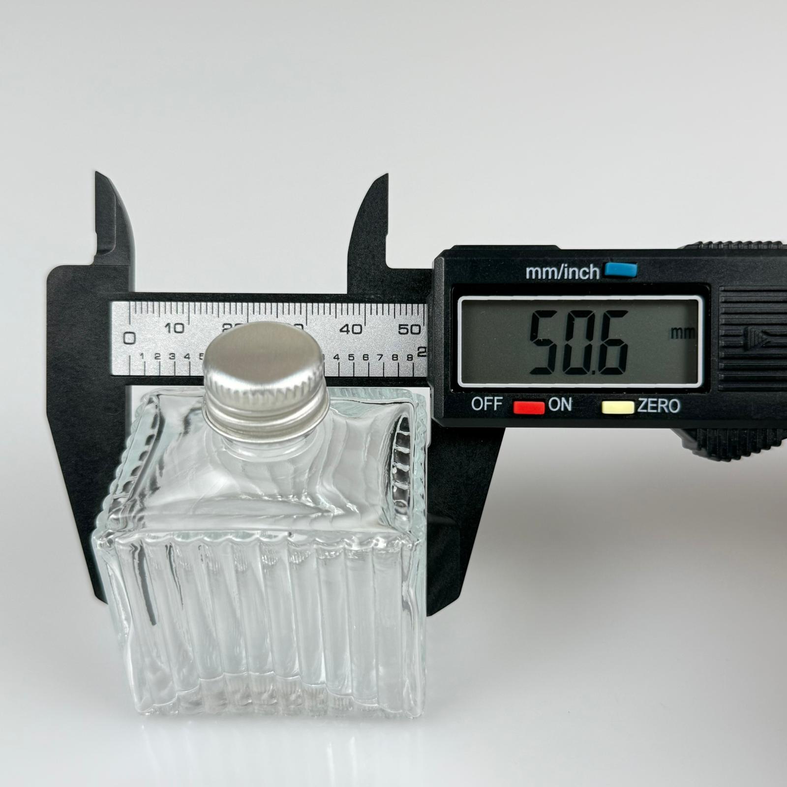 50 CC KÖŞELİ DESENLİ ÇİZGİLİ CAM ŞİŞE - GÜMÜŞ METAL KAPAKLI - 50 ML PRESTİJLİ ŞİŞE