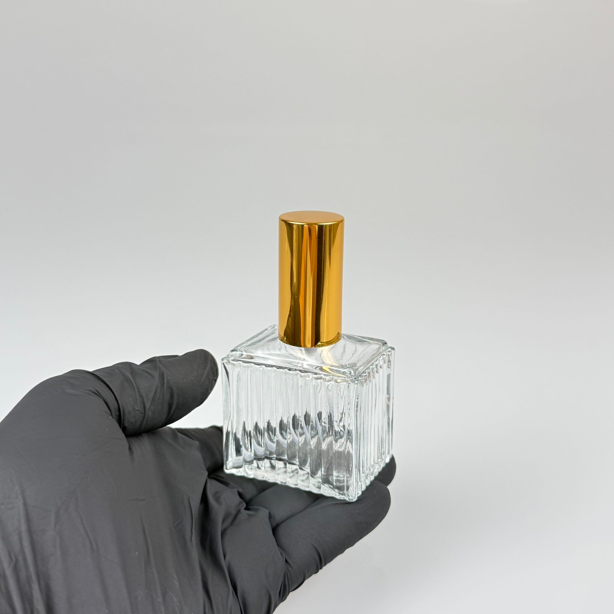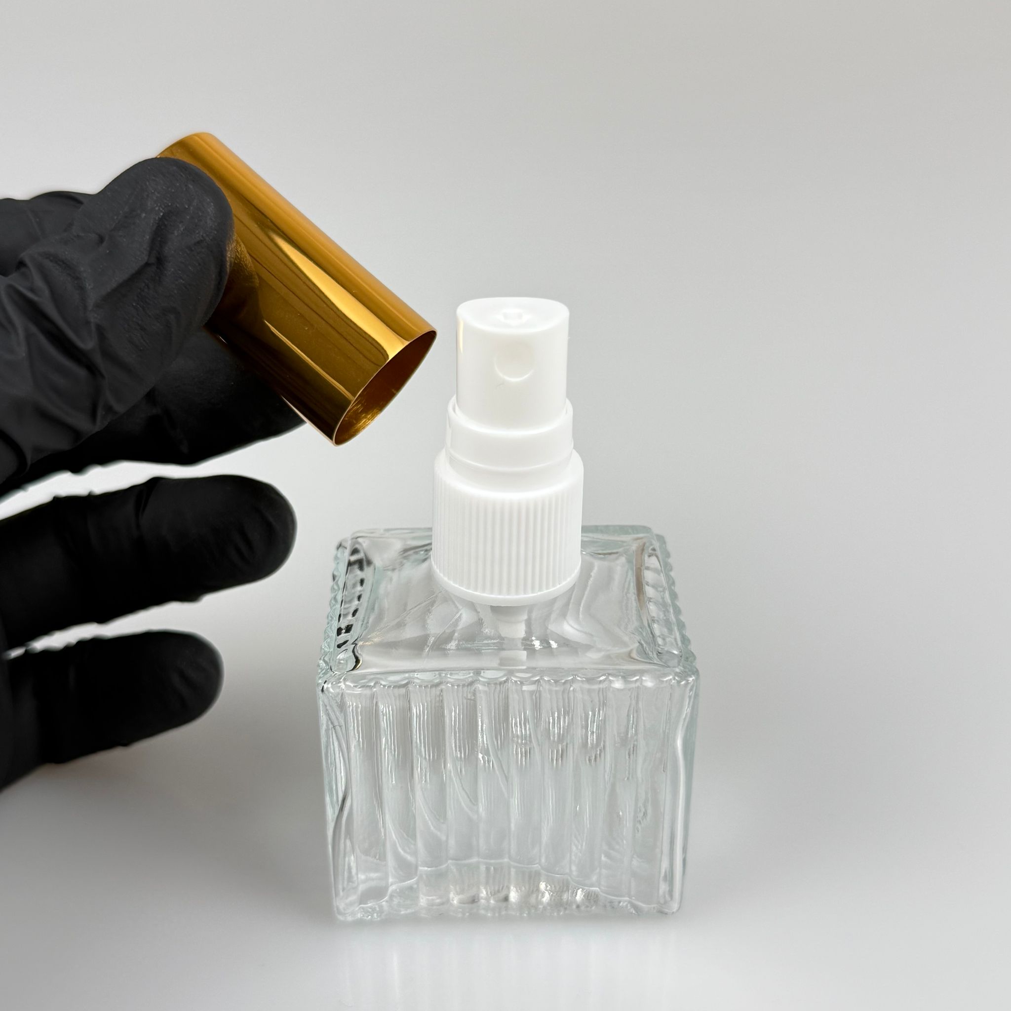 50 CC KÖŞELİ DESENLİ ÇİZGİLİ CAM ŞİŞE - VİDALI GOLD SPREYLİ PARFÜM KOLONYA ŞİŞESİ TAKIM - 50 ML PRESTİJLİ ŞİŞE