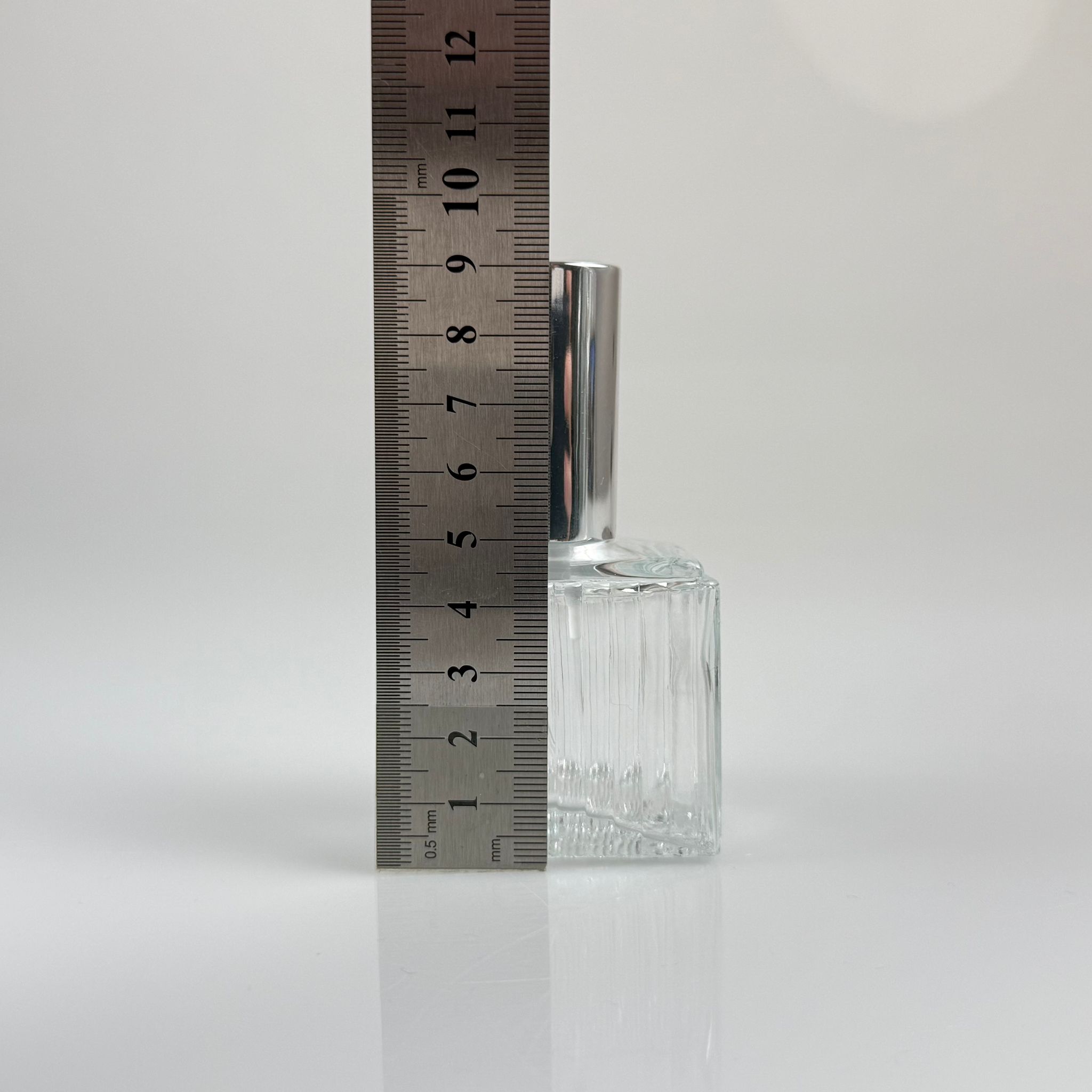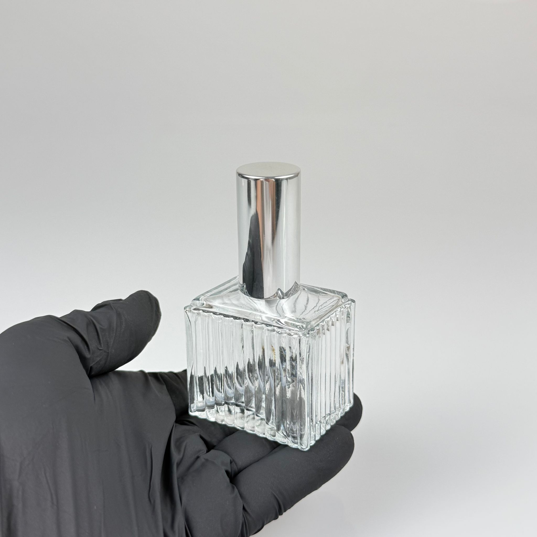 50 CC KÖŞELİ DESENLİ ÇİZGİLİ CAM ŞİŞE - VİDALI GÜMÜŞ SPREYLİ PARFÜM KOLONYA ŞİŞESİ TAKIM - 50 ML PRESTİJLİ ŞİŞE