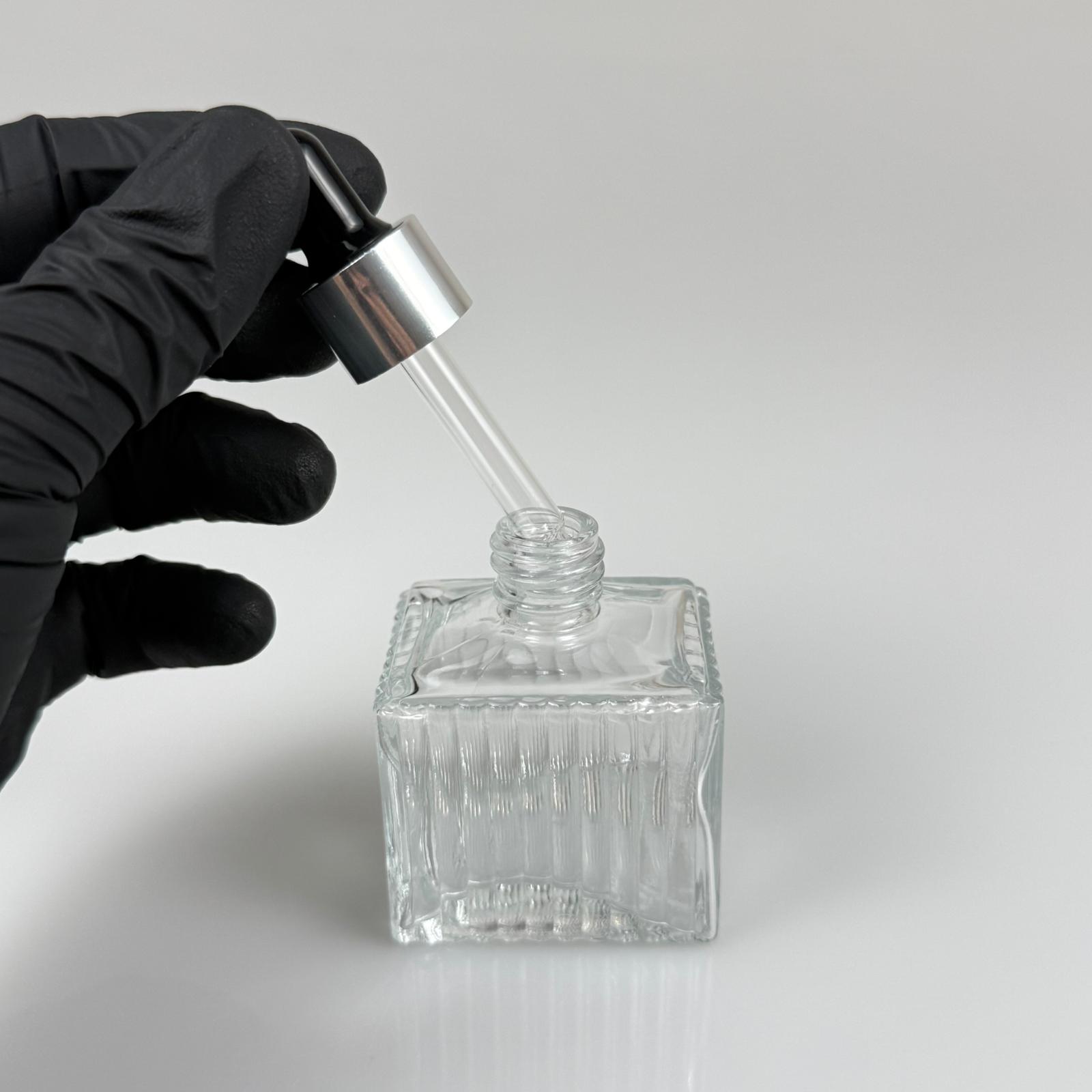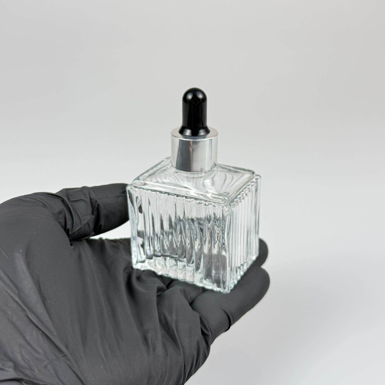 50 CC KÖŞELİ DESENLİ ÇİZGİLİ PRESTİJLİ CAM DAMLALIKLI ŞİŞE - SİYAH EMZİK - GÜMÜŞ METALİK KAPAK - 50 ML CAM DAMLALIKLI ŞİŞE - DAMLALIKLI BOŞ ŞİŞE
