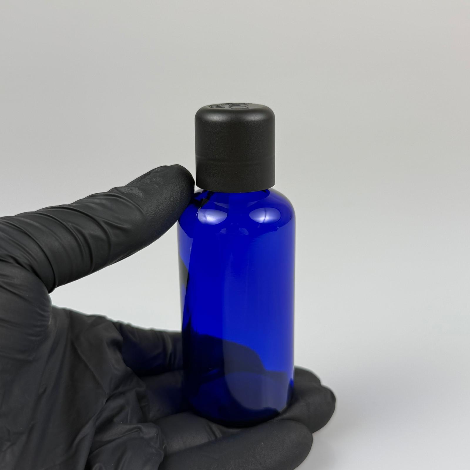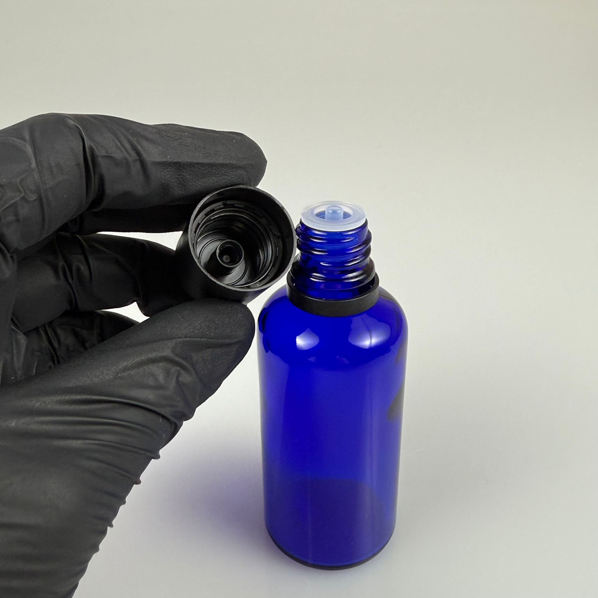 50 CC MAVİ CAM ŞİŞE + İÇTEN DAMLALIKLI ÇOCUK KİLİTLİ SİYAH KAPAK - MAVİ 50 ML KİLİT KAPAKLI DAMLATMALI ŞİŞE