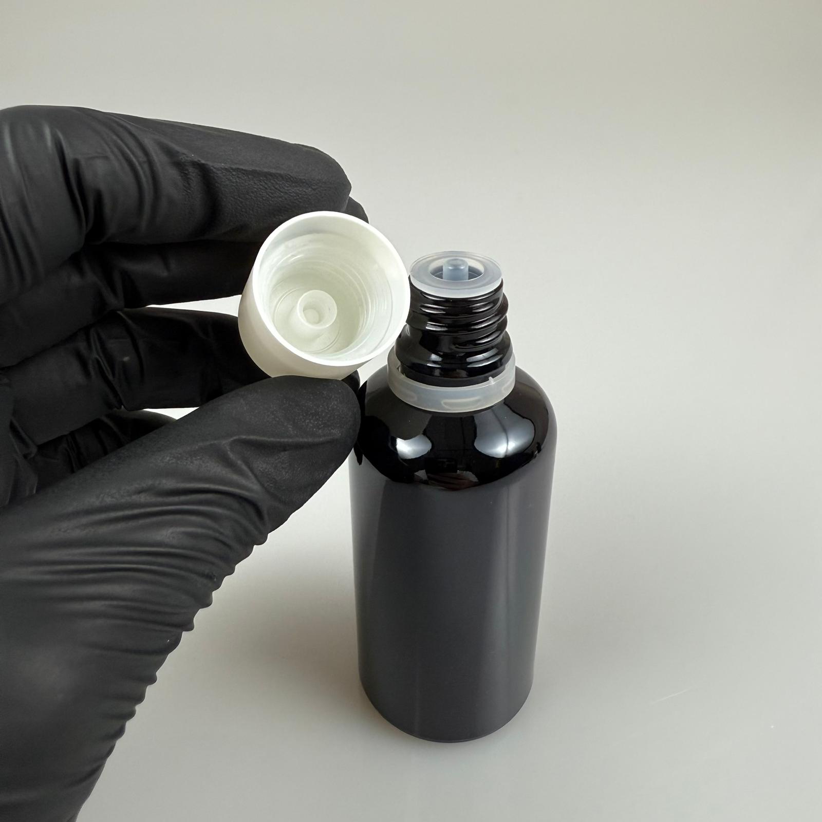50 CC ORJİNAL SİYAH CAM ŞİŞE + İÇTEN DAMLALIKLI ÇOCUK KİLİTLİ BEYAZ KAPAK - SİYAH 50 ML KİLİT KAPAKLI DAMLATMALI ŞİŞE