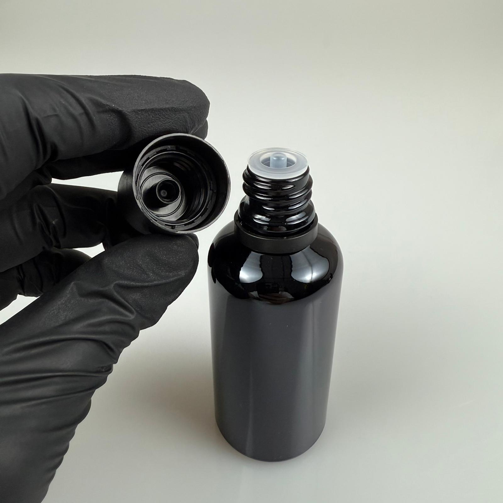 50 CC ORJİNAL SİYAH CAM ŞİŞE + İÇTEN DAMLALIKLI ÇOCUK KİLİTLİ SİYAH KAPAK - SİYAH 50 ML KİLİT KAPAKLI DAMLATMALI ŞİŞE