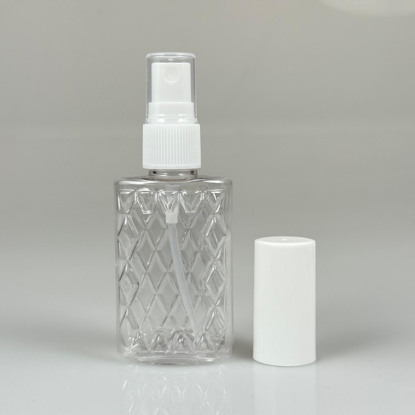 50 CC ŞEFFAF PET KÖŞELİ PARFÜM ŞİŞESİ - BEYAZ SPREYLİ - BEYAZ KORUMA KAPAKLI - 50 ML PLASTİK PARFÜM - KOLONYA ŞİŞESİ