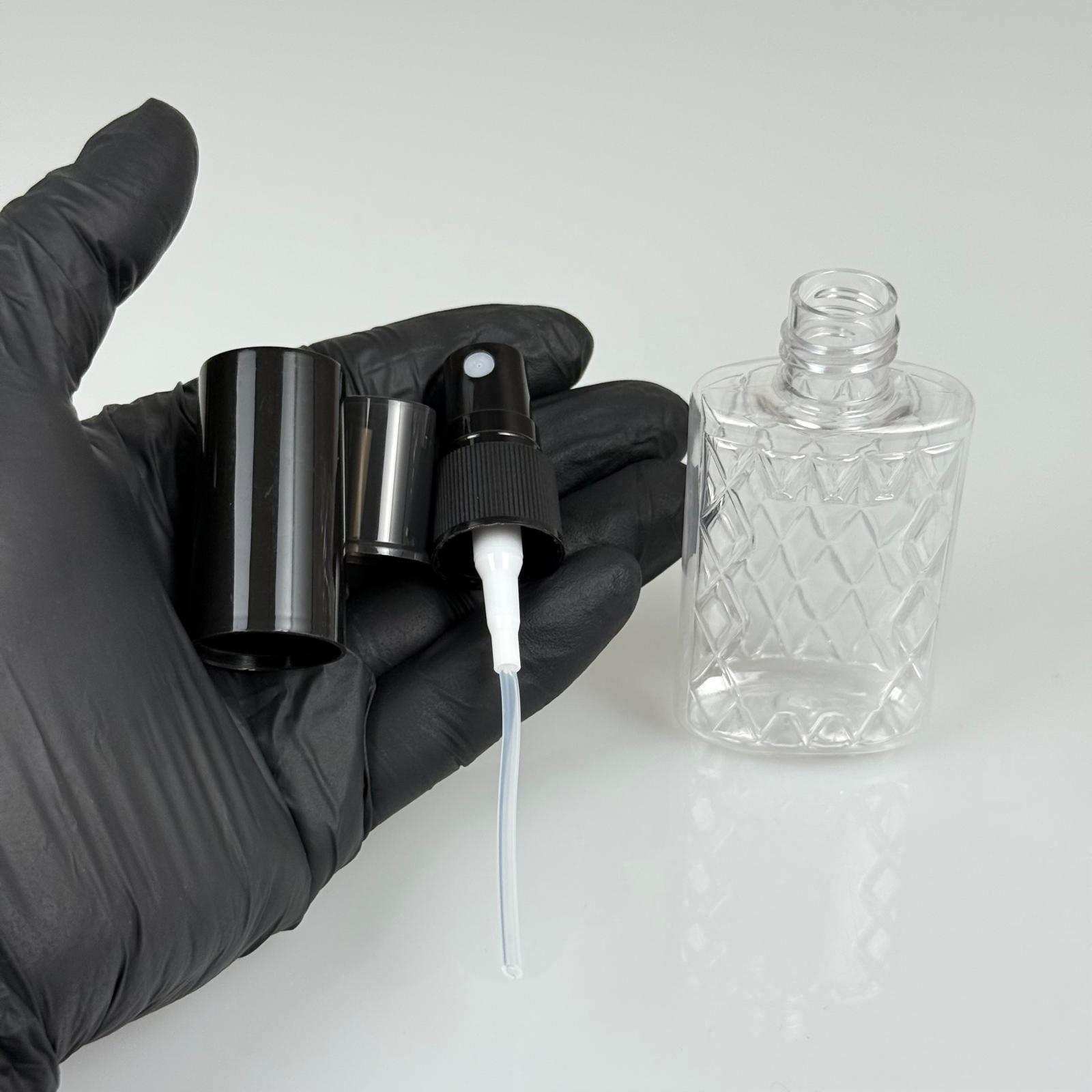 50 CC ŞEFFAF PET KÖŞELİ PARFÜM ŞİŞESİ - SİYAH SPREYLİ - SİYAH KORUMA KAPAKLI - 50 ML PLASTİK PARFÜM - KOLONYA ŞİŞESİ