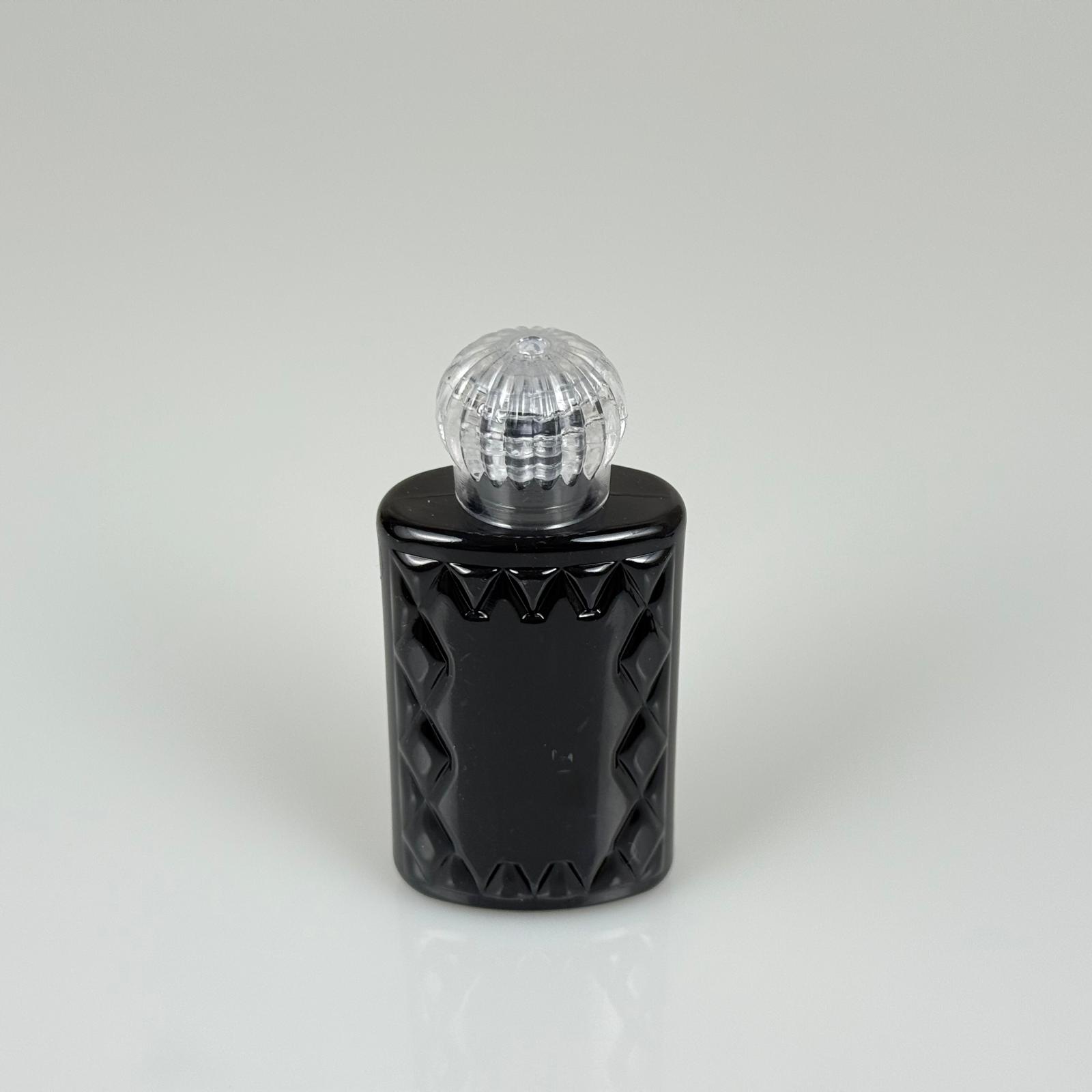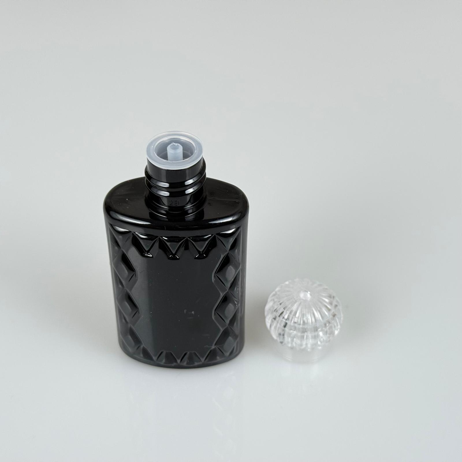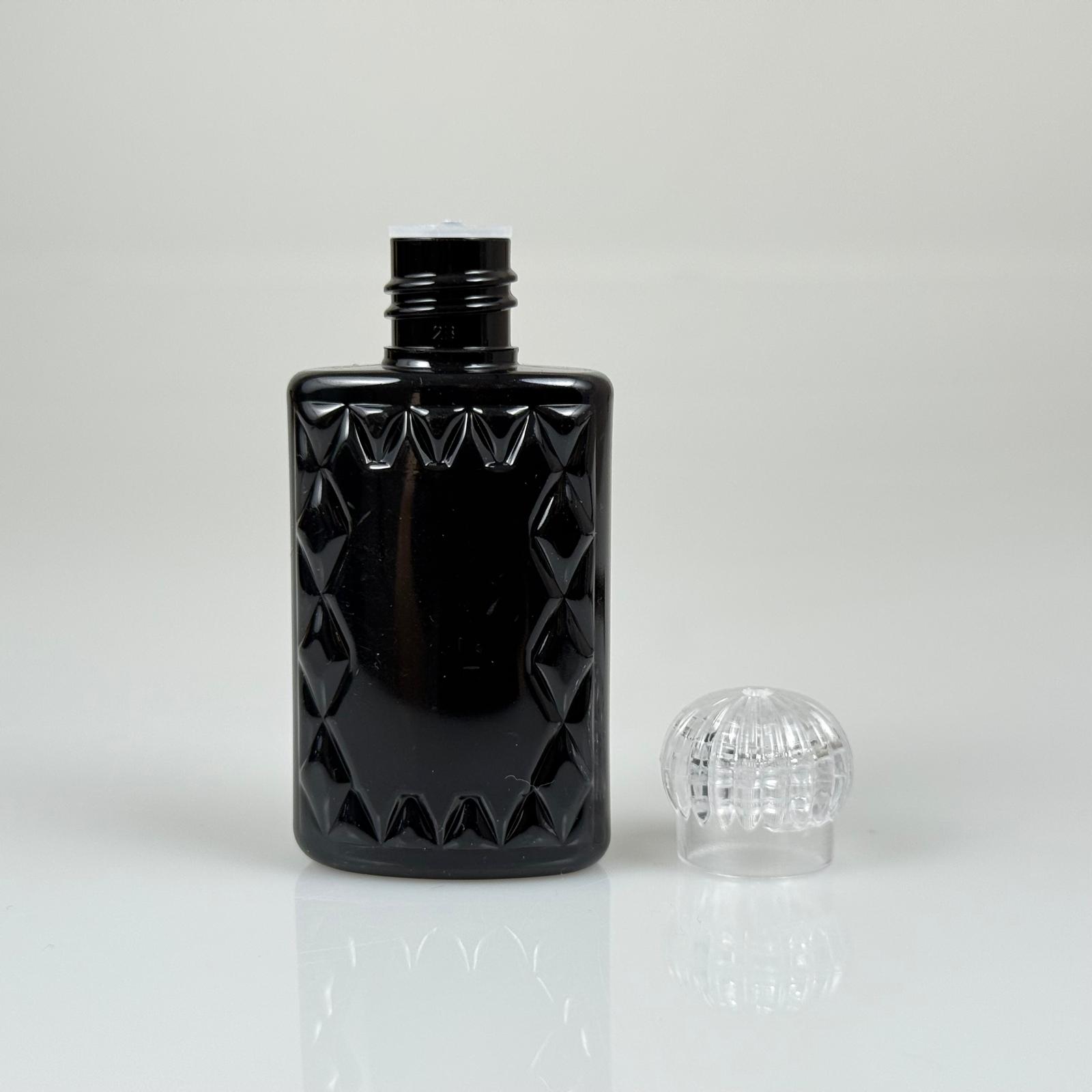 50 CC SİYAH PLASTİK KOLONYA ŞİŞESİ - KRİSTAL KAPAKLI TIPALI - 50 ML YASSI PET DESENLİ KOLONYA ŞİŞESİ