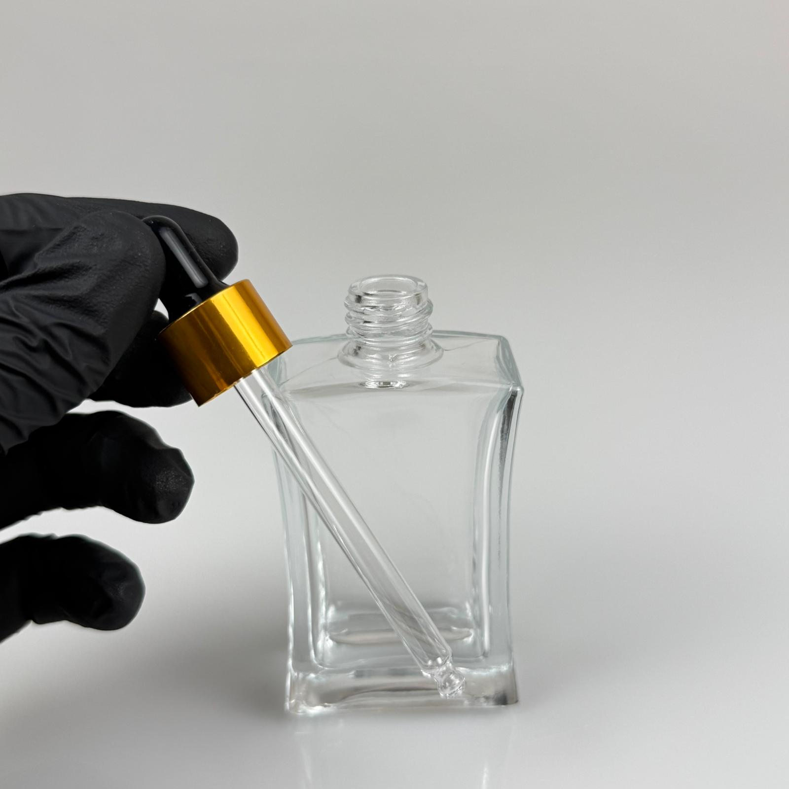 50 CC YASSI DİKDÖRTGEN KÖŞELİ CAM DAMLALIKLI ŞİŞE - SİYAH EMZİK - GOLD METALİK KAPAK - 50 ML CAM DAMLALIKLI ŞİŞE - DAMLALIKLI BOŞ ŞİŞE