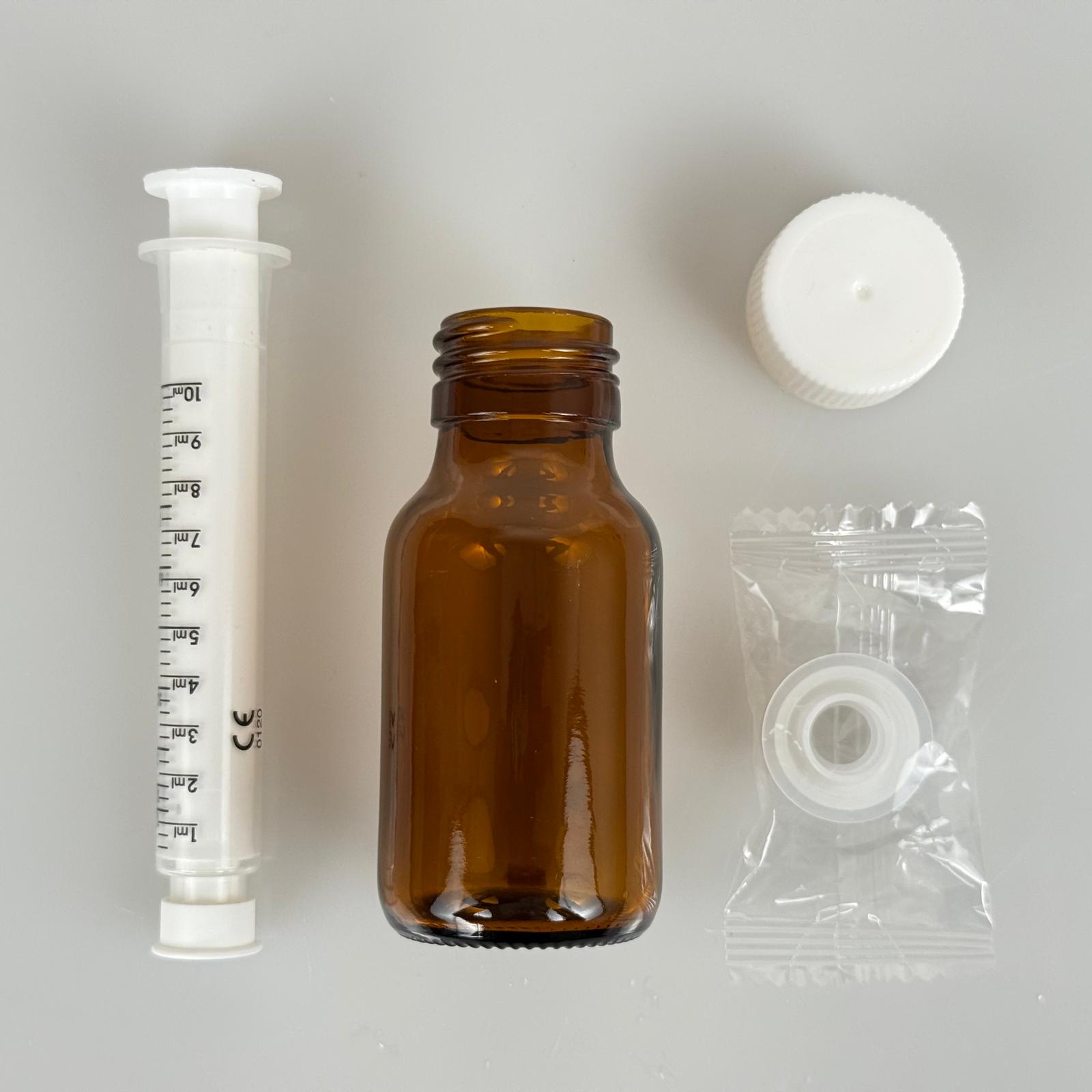 50 ML CAM ECZA ŞİŞESİ + 10 ML DOZAJ PİPETİ + DOZAJ TIPASI + CONTALI PLASTİK KAPAK TAKIM