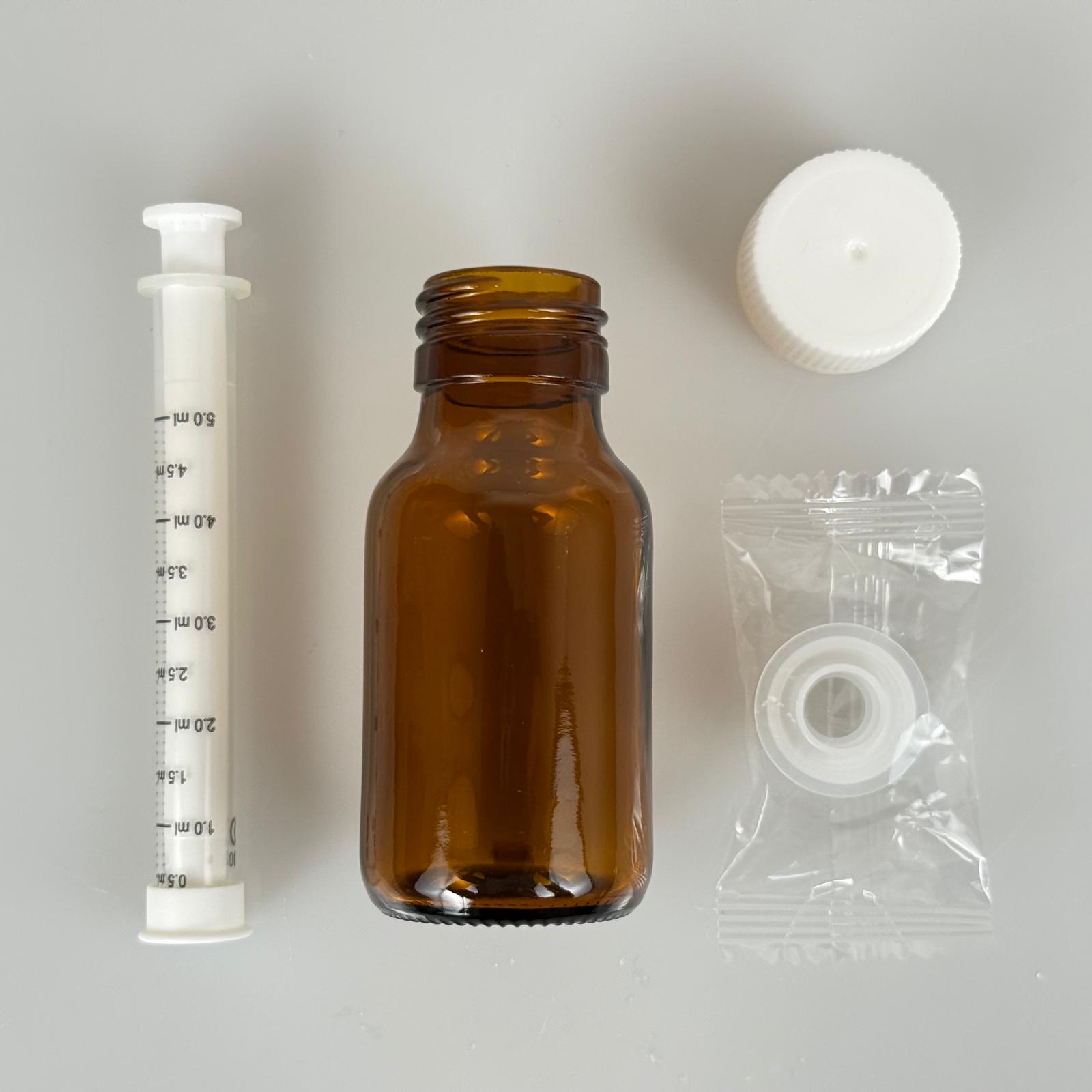 50 ML CAM ECZA ŞİŞESİ + 5 ML DOZAJ PİPETİ + DOZAJ TIPASI + CONTALI PLASTİK KAPAK TAKIM