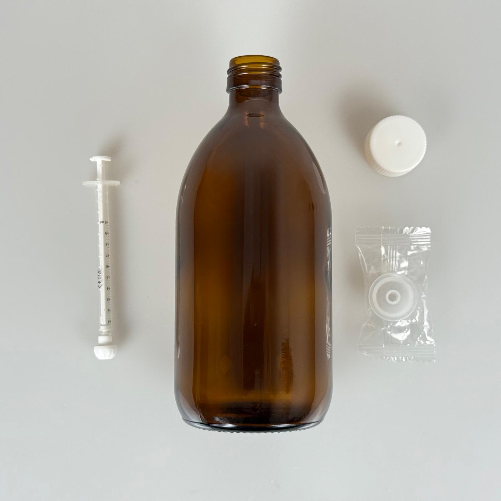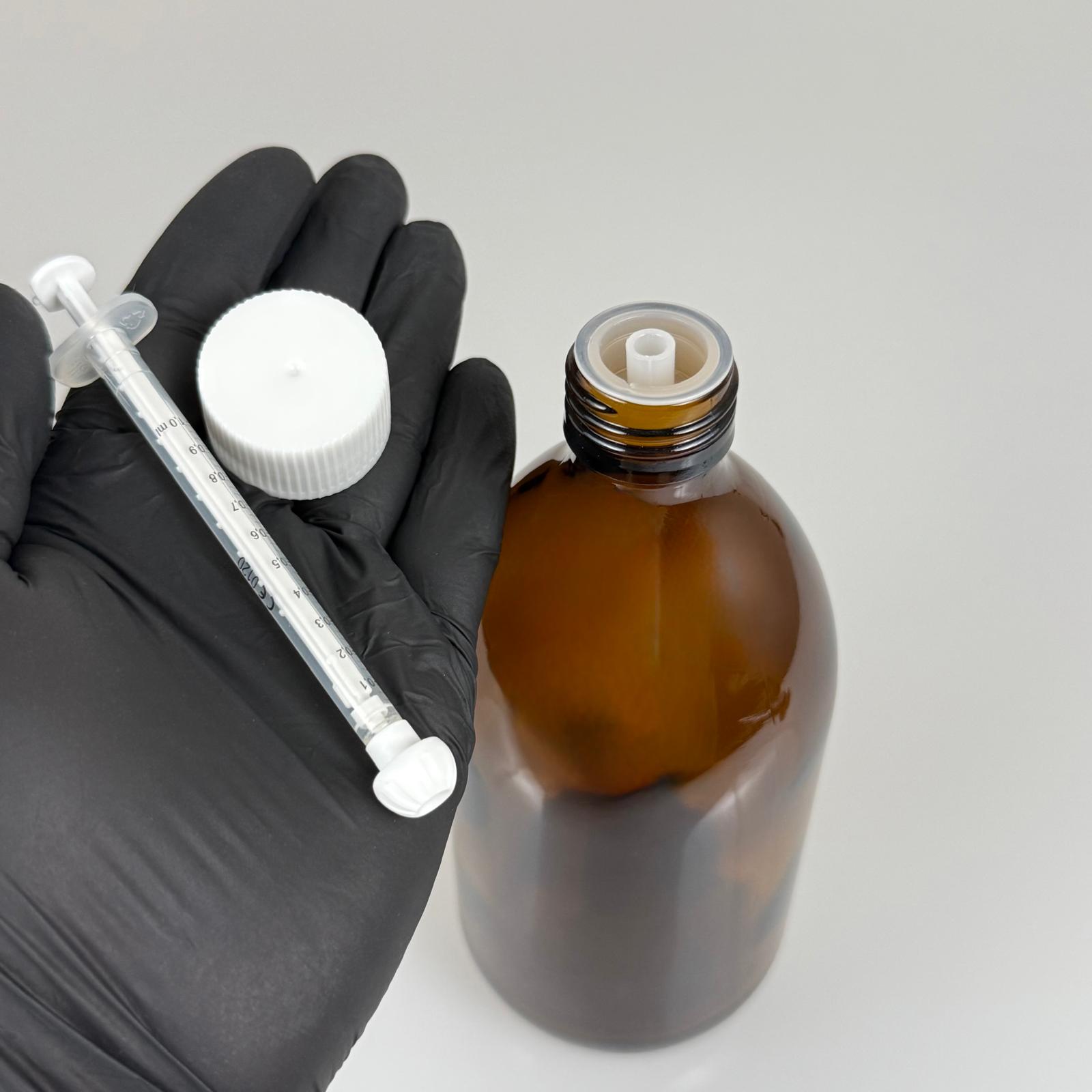 500 ML CAM ECZA ŞİŞESİ + 1 ML DOZAJ PİPETİ + DOZAJ TIPASI + CONTALI PLASTİK KAPAK TAKIM