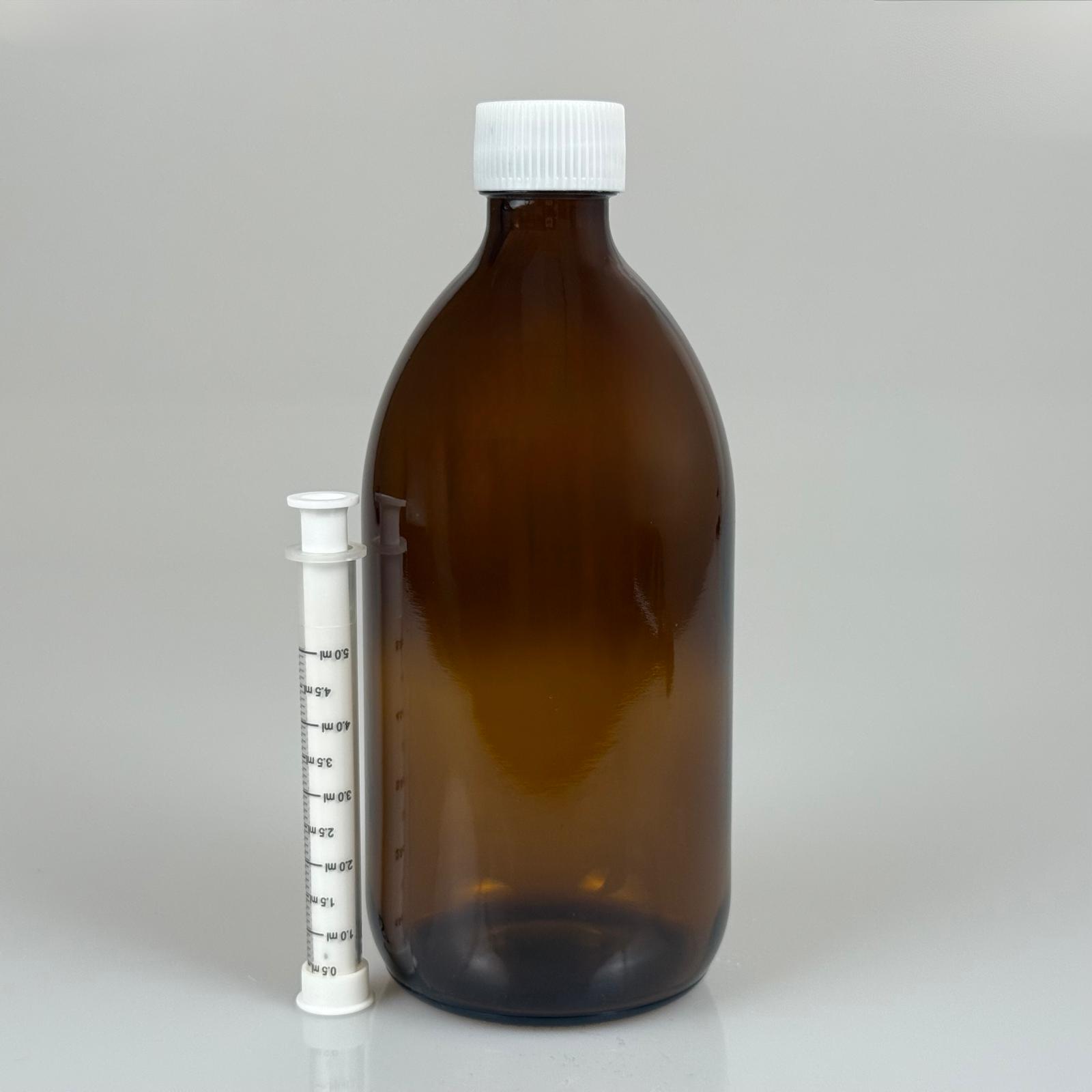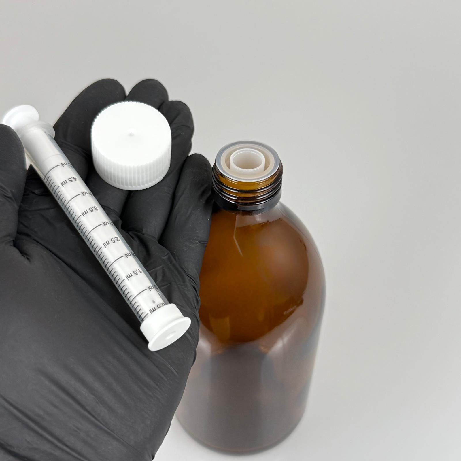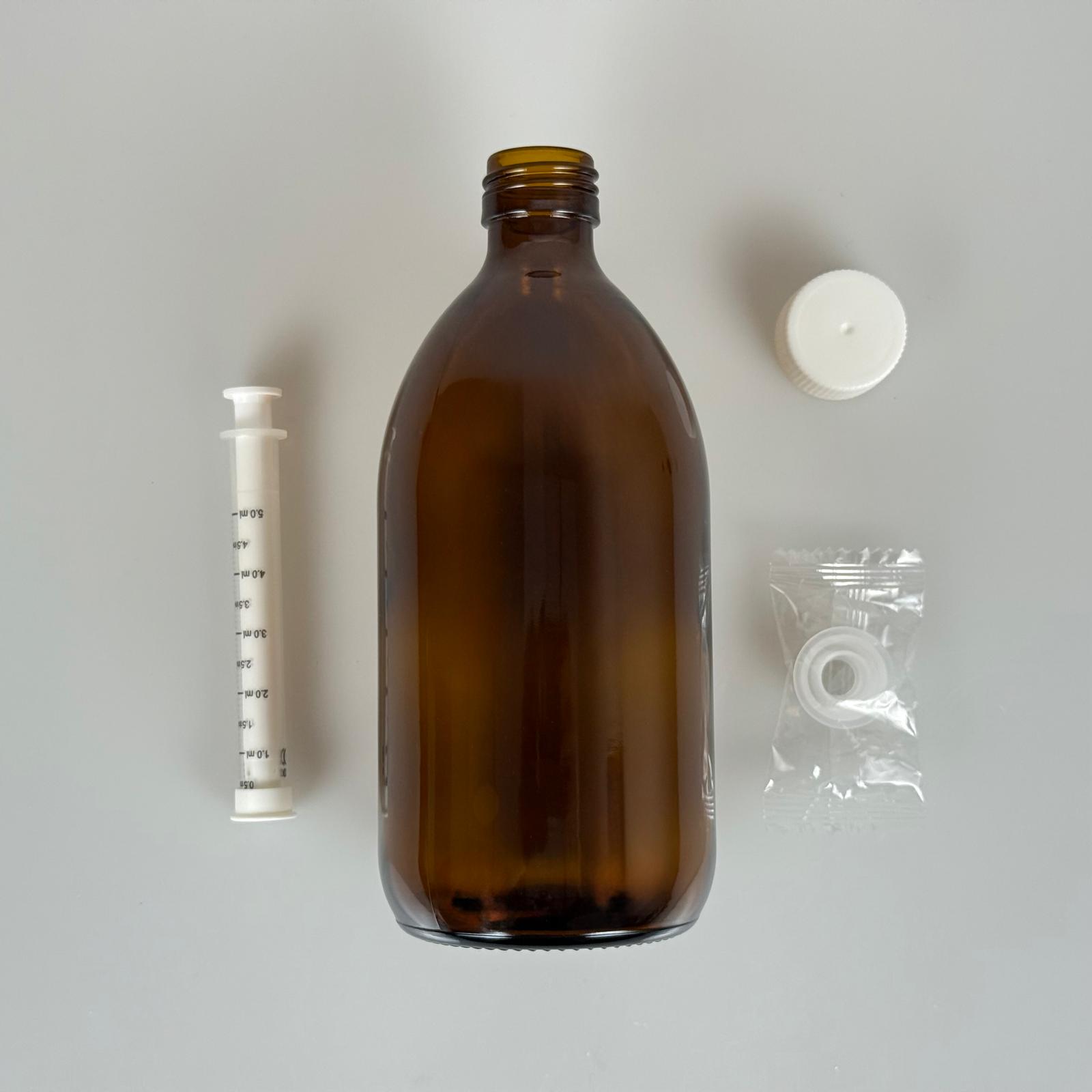 500 ML CAM ECZA ŞİŞESİ + 5 ML DOZAJ PİPETİ + DOZAJ TIPASI + CONTALI PLASTİK KAPAK TAKIM
