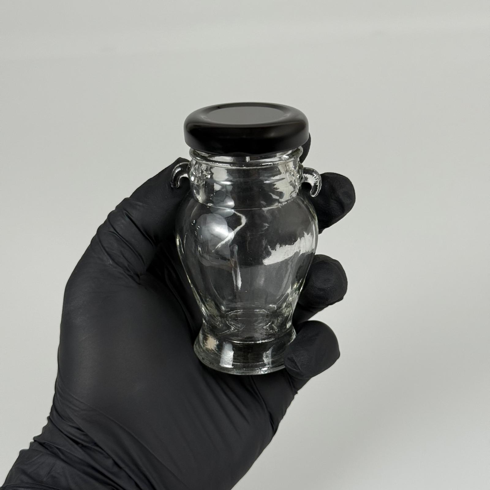 60 CC AMPHORA CAM KAVANOZ - SİYAH METAL KAPAKLI - 60 ML CAM KAVANOZ - TEK KULPLU, KULPSUZ VEYA ÇİFT KULPLU GELEBİLİR