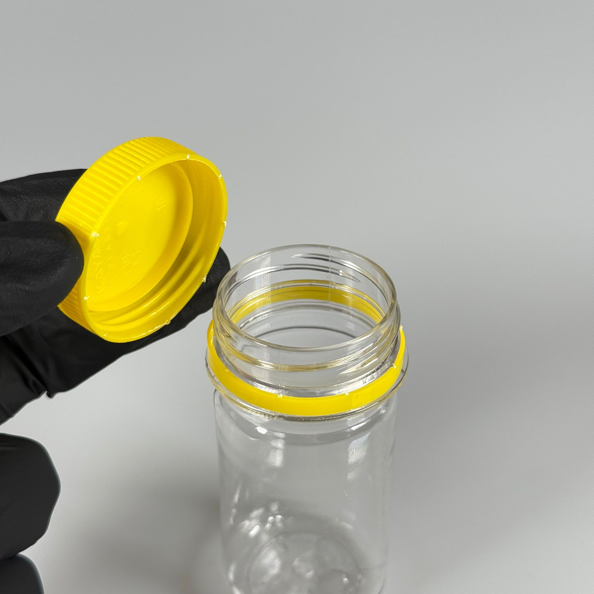 60 CC SİLİNDİR PET ŞİŞE (15,6 GR) - 38 MM GENİŞ AĞIZLI KİLİTLİ SARI KAPAKLI - 60 ML PLASTİK NUMUNE BOŞ ŞİŞELER