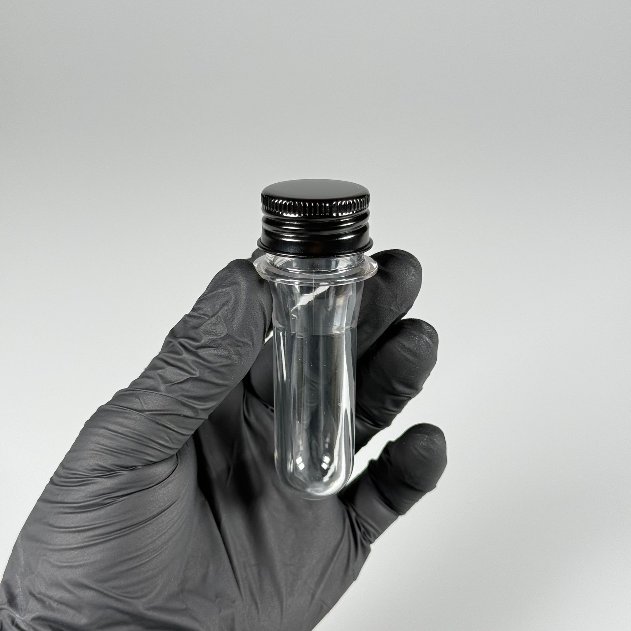 9 CM TÜP - 20 CC UZUN KALIN (20 GR) PET ŞİŞE - SİYAH ALÜMİNYUM METAL KAPAKLI - BAHARAT, DENEY TÜPÜ, AYAKKABI BAĞCIĞI VB İÇİN PLASTİK TÜP