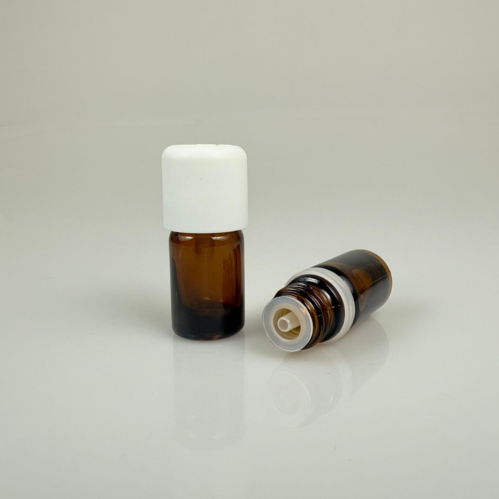 3 CC AMBER İÇTEN DAMLALIKLI (OPSİYONEL DAMLALIK) - BEYAZ KİLİTLİ KAPAKLI CAM ŞİŞE - 3 ML KOLONYA TIPALI CAM ŞİŞE