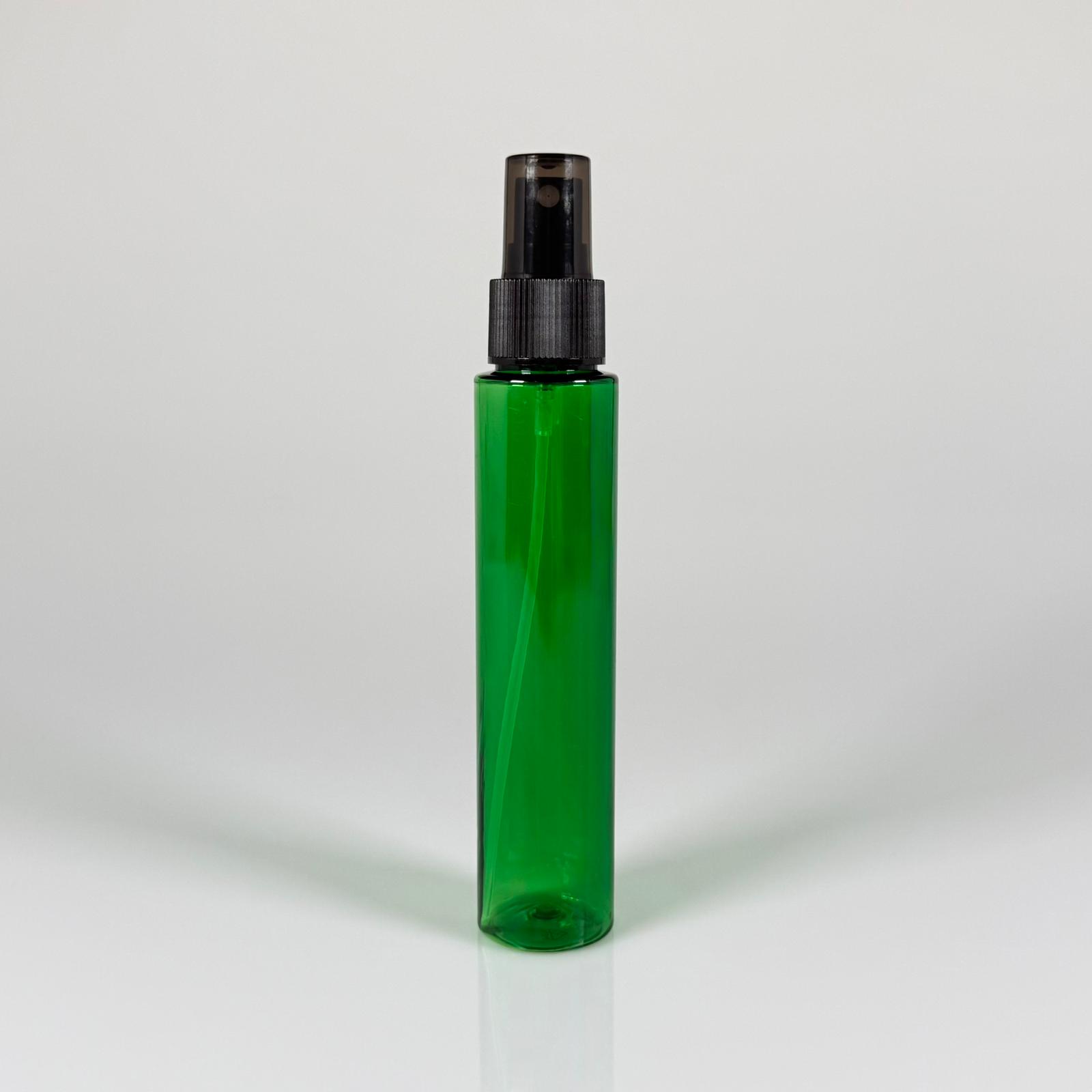 100 CC UZUN SİLİNDİR YEŞİL PET ŞİŞE (24 GR) - SİYAH SPREYLİ - 100 ML BİBERİYE SUYU, LAVANTA YAĞI, SAÇ SERUM, TONİK VB İÇİN PLASTİK KOZMETİK AMBALAJLARI