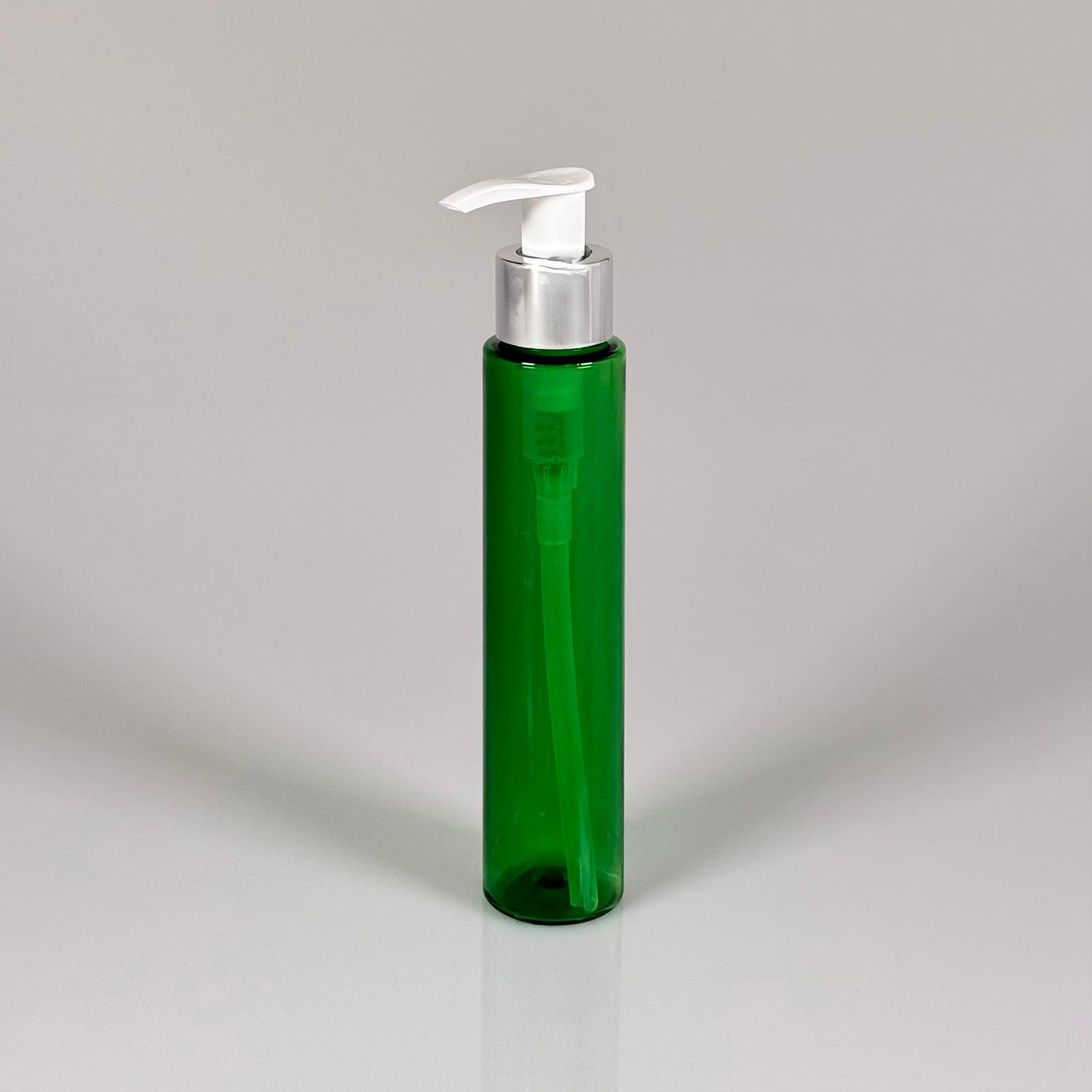 100 CC UZUN SİLİNDİR YEŞİL PET ŞİŞE (24 GR) - GÜMÜŞ SABUN POMPALI - 100 ML BİBERİYE SUYU, LAVANTA YAĞI, SAÇ SERUM, TONİK VB İÇİN PLASTİK KOZMETİK AMBALAJLARI