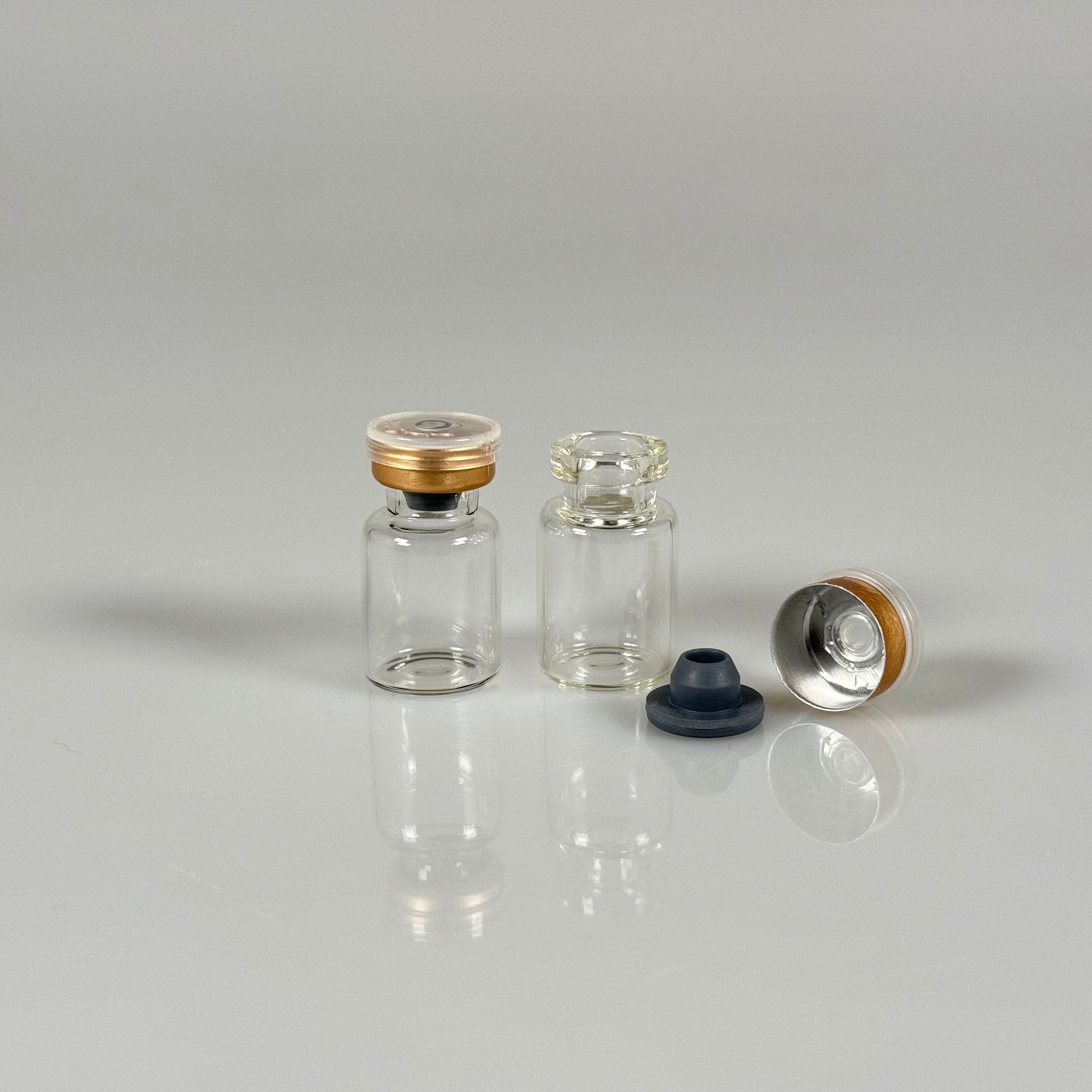 2 ML vial flakon şişe - 13 ağız 2 cc şeffaf cam ilaç şişesi + kauçuk butil enjektör tıpası + gold alüminyum kapaklı takım