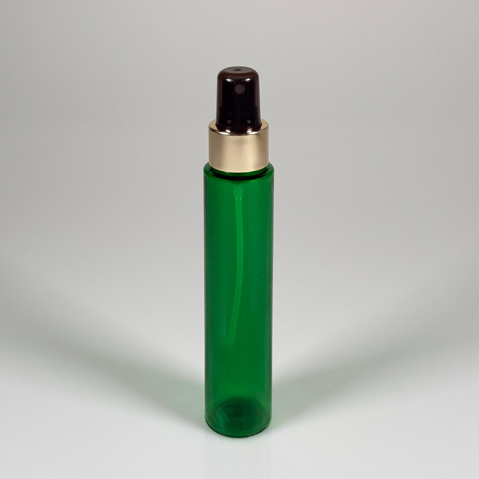 100 CC UZUN SİLİNDİR YEŞİL PET ŞİŞE (24 GR) - GOLD SPREYLİ - 100 ML BİBERİYE SUYU, LAVANTA YAĞI, SAÇ SERUM, TONİK VB İÇİN PLASTİK KOZMETİK AMBALAJLARI