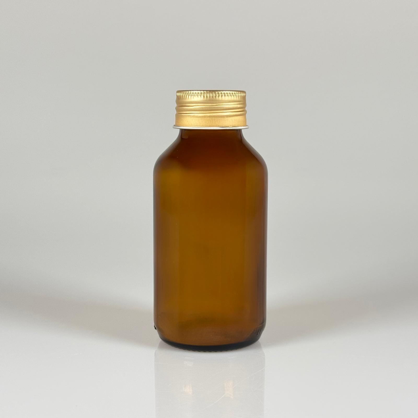 200 CC AMBER CAM ŞİŞE - 35 PP AĞIZ GENİŞ AĞIZLI - GOLD METAL CONTALI KAPAKLI - 200 ML KAHVERENGİ TABLET CAM ŞİŞESİ