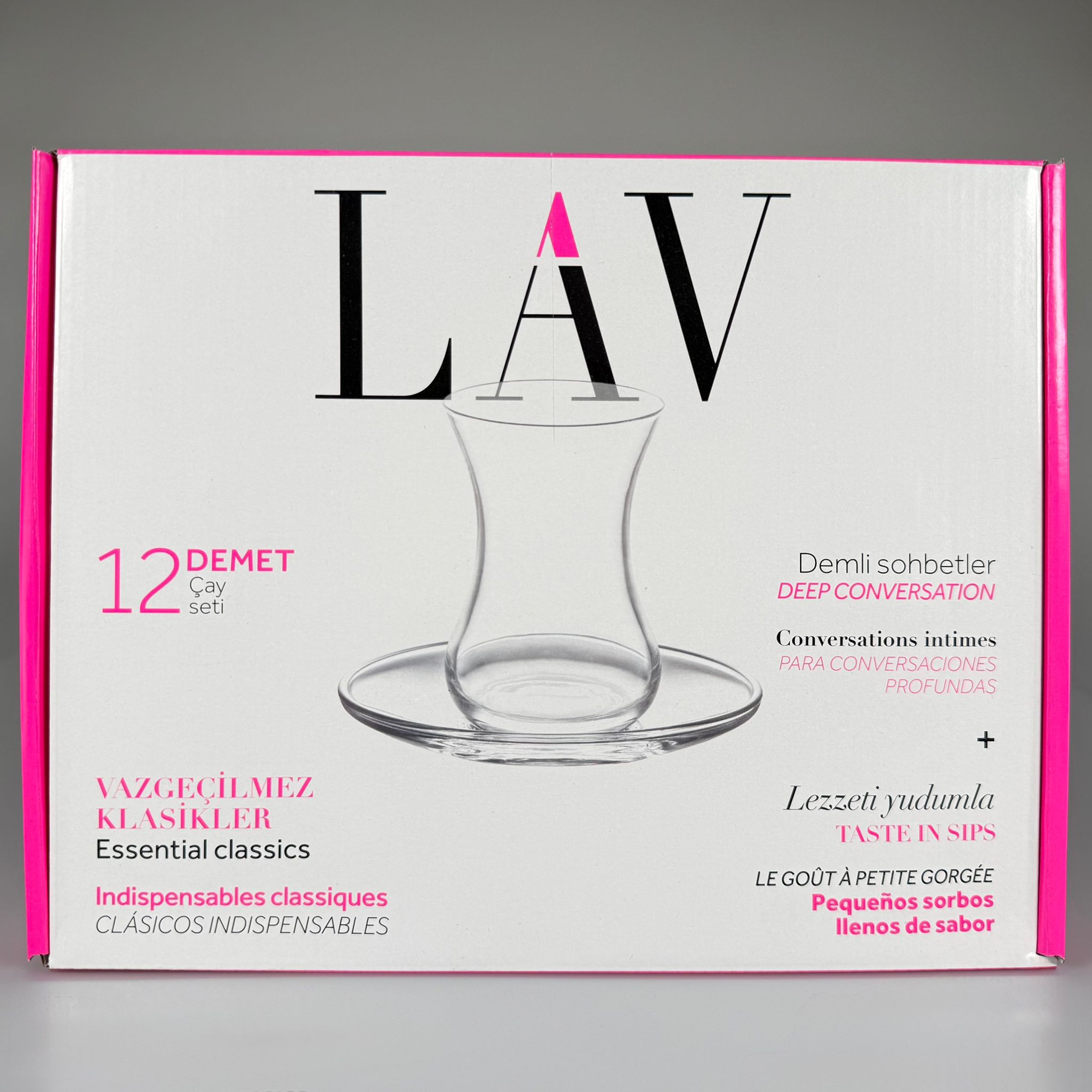 HEDİYELİK ÇAY SETİ 6 BARDAK + 6 TABAK - DEMET 12 PARÇA ÇAY SETİ (DMT303 BARDAK 6 ADET + ASN274 SADE TABAK 6 ADET) LAV