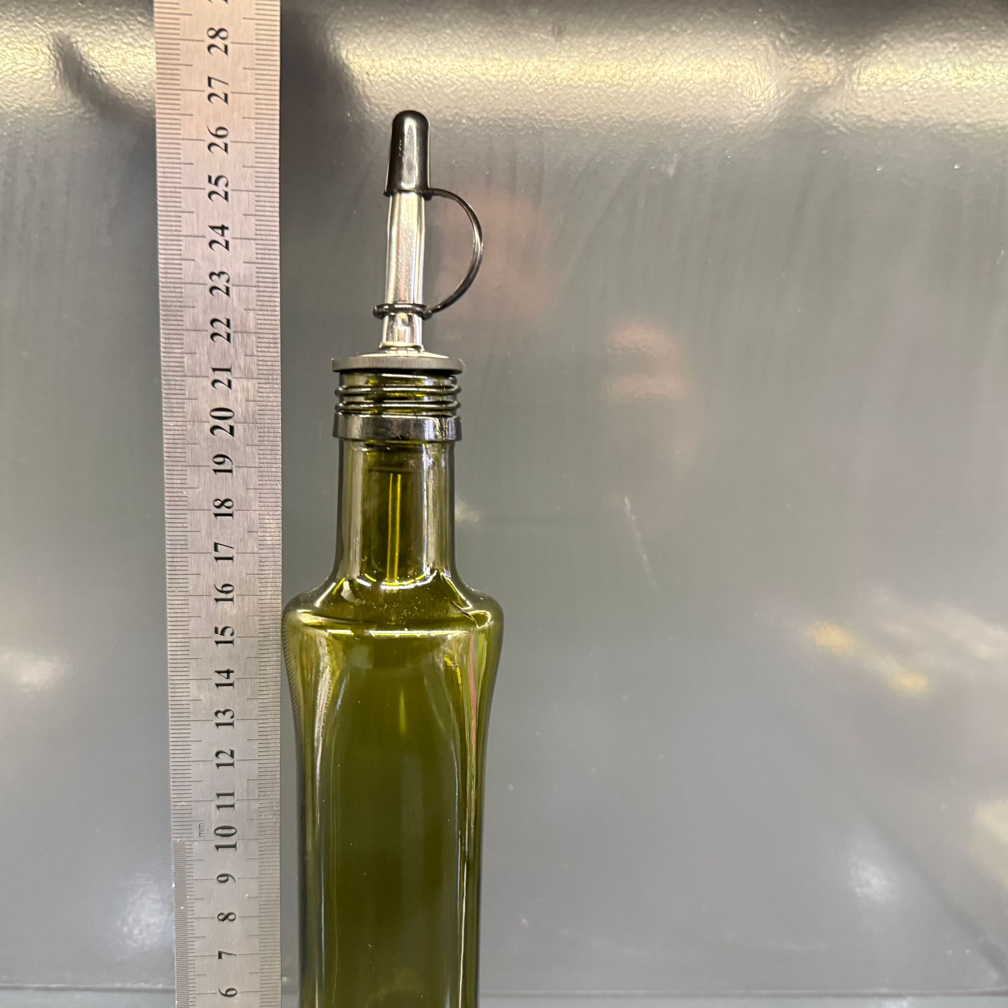 KÖŞELİ CAM YAĞLIK - 250 ML YEŞİL KARE CAM GEOLİVE ŞİŞE + KAPAKLI ÇELİK YAĞDANLIK TIPASI TAKIM