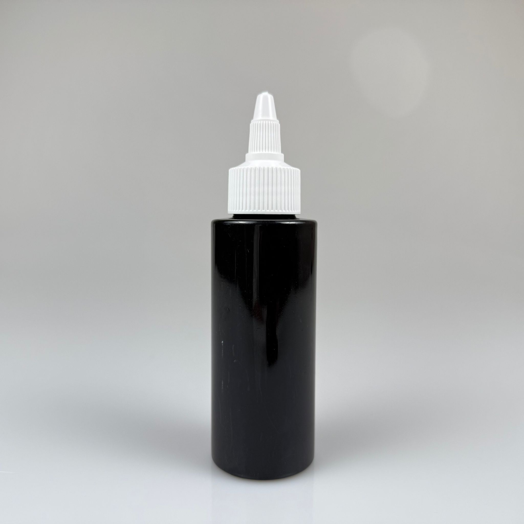 YAĞ, SOS, ACI SOS, SİRKE, SRIRACHA, MÜREKKEP, TUTKAL AKITICI VB BOŞ ŞİŞELERİ - BEYAZ SİVRİ TWİST AKITICI KAPAK + 100 ML KÜT SİYAH SERT PET PLASTİK ŞİŞE TAKIM