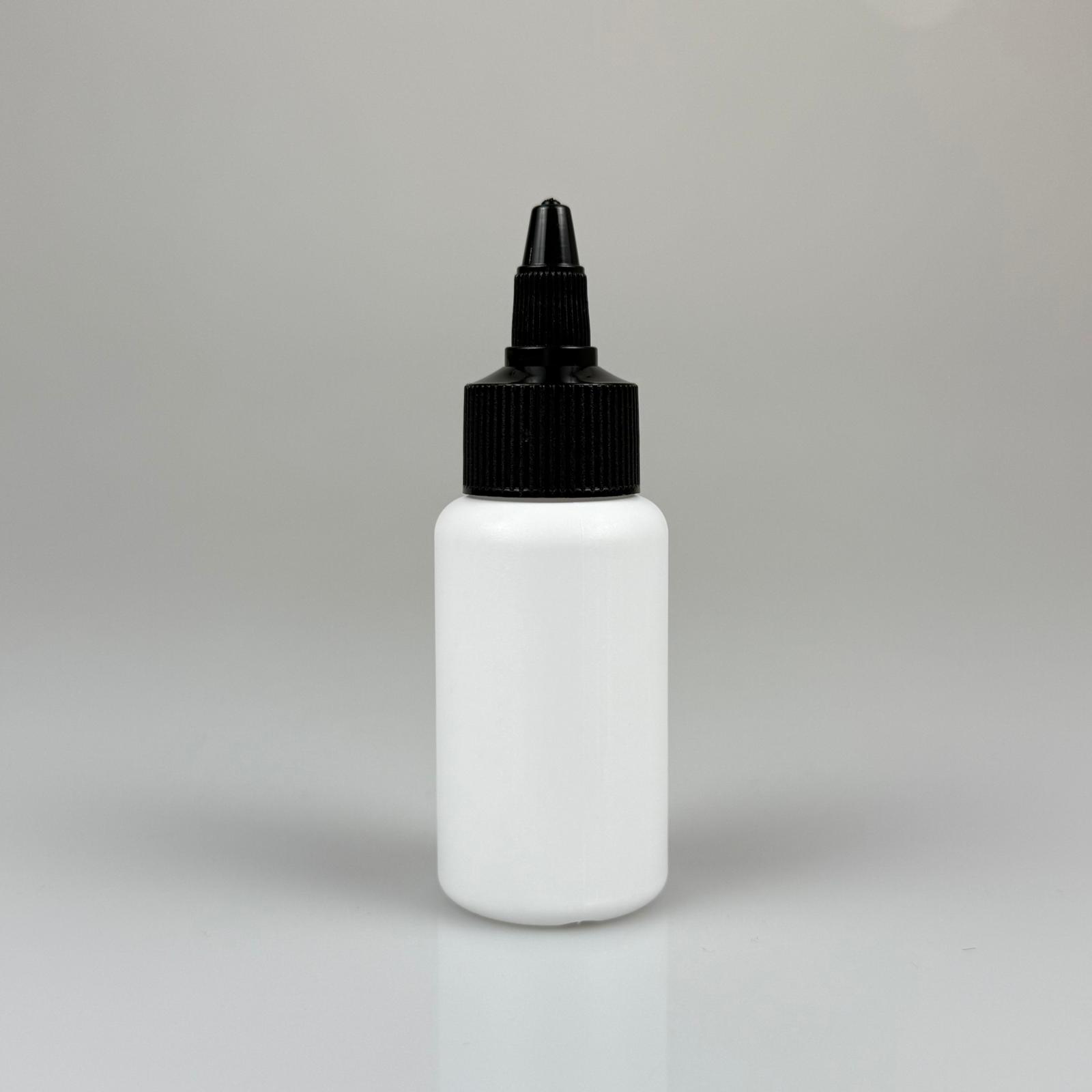 YAĞ, SOS, ACI SOS, SİRKE, SRIRACHA, MÜREKKEP, TUTKAL AKITICI VB BOŞ ŞİŞELERİ - SİYAH SİVRİ TWİST AKITICI KAPAK + 50 ML BEYAZ POLİETİLEN PLASTİK ŞİŞE TAKIM