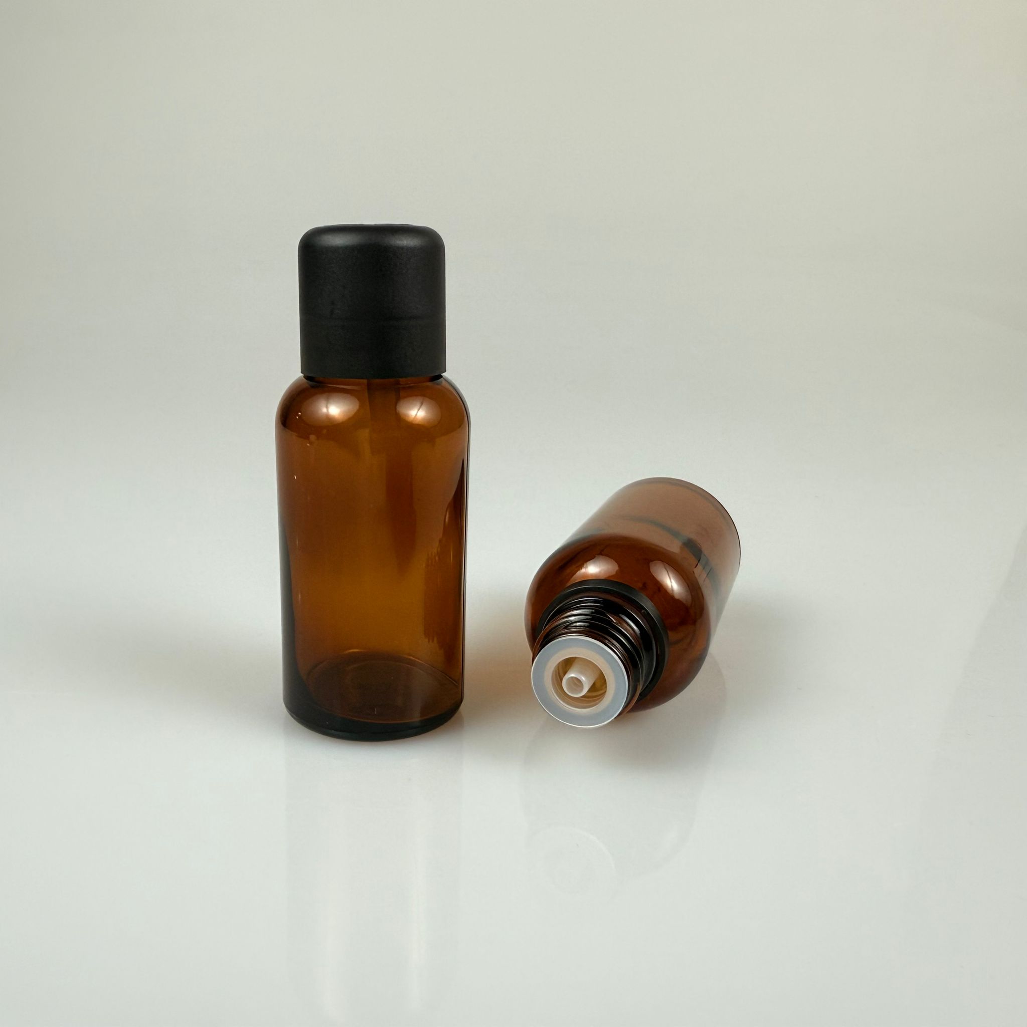 30 ML DOLUMU KOLAY, GENİŞ AĞIZLI İÇTEN DAMLALIKLI ŞİŞE (25 MM AĞIZ) - 30 CC SİYAH CONTALI KAPAKLI İÇTEN DAMLALIKLI CAM ECZA ŞİŞESİ - AMBER KAHVERENGİ