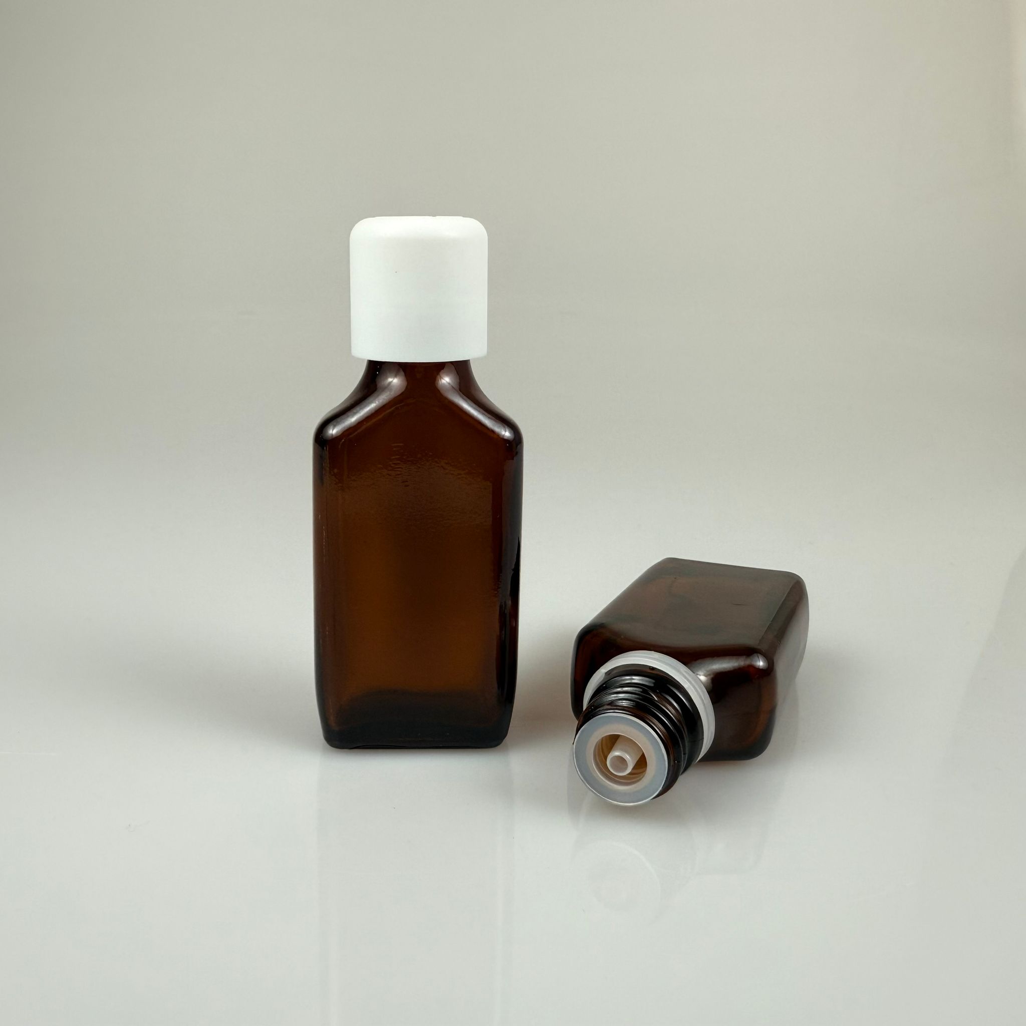 30 CC AMBER YASSI CAM ŞİŞE + İÇTEN DAMLALIKLI ÇOCUK KİLİTLİ BEYAZ KAPAK - KAHVERENGİ 30 ML KİLİT KAPAKLI DAMLATMALI ŞİŞE