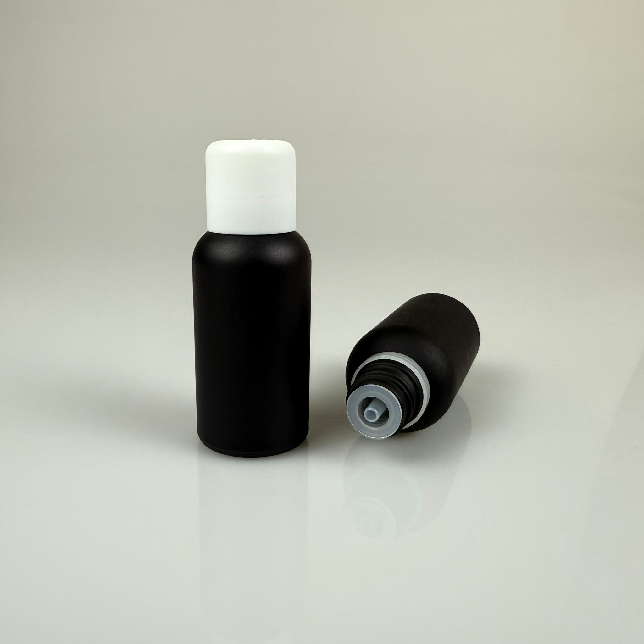 30 CC MAT SİYAH CAM ŞİŞE + İÇTEN DAMLALIKLI ÇOCUK KİLİTLİ BEYAZ KAPAK - MAT SİYAH 30 ML KİLİT KAPAKLI DAMLATMALI ŞİŞE