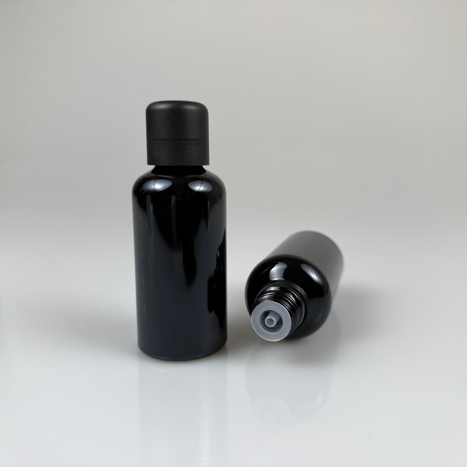 50 CC SİYAH İÇTEN DAMLALIKLI - SİYAH PLASTİK KAPAKLI CAM ŞİŞE - 50 ML KOLONYA TIPALI CAM ŞİŞE