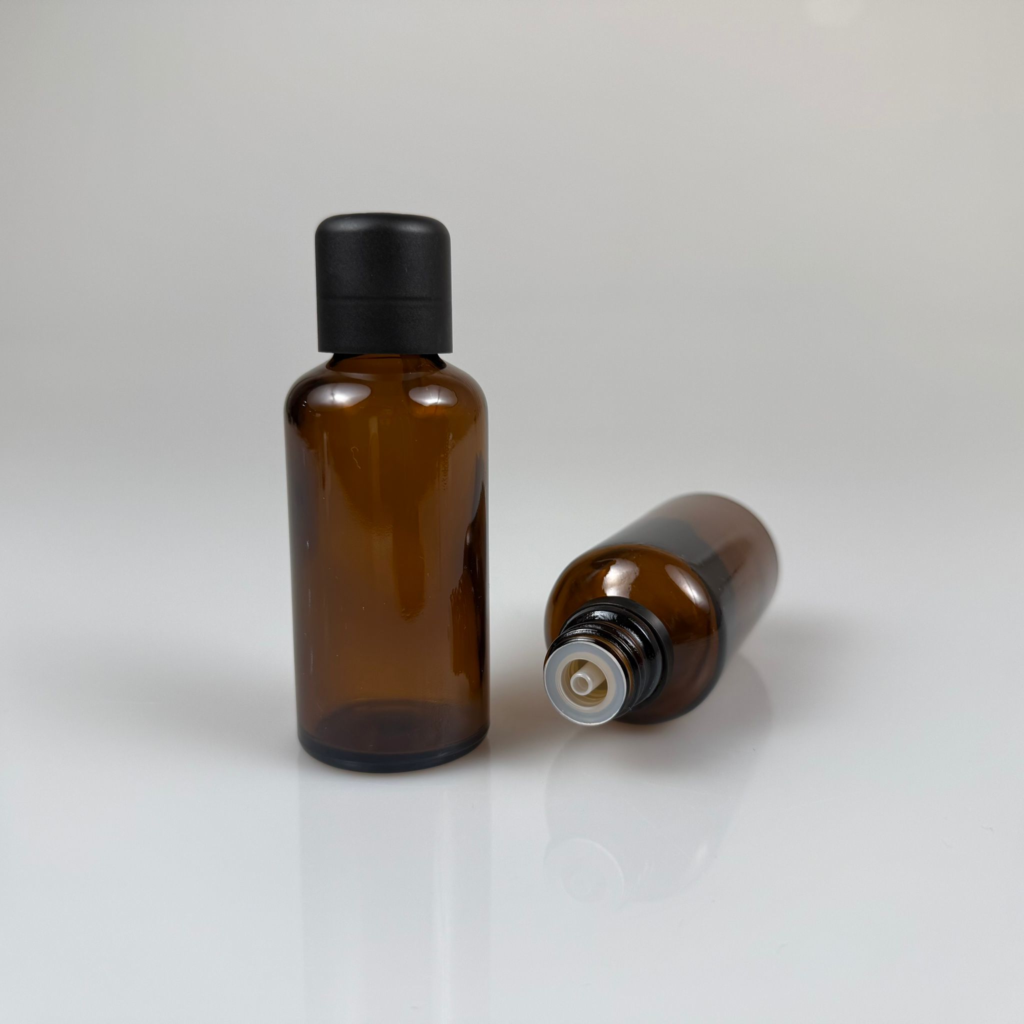 50 CC AMBER CAM ŞİŞE + İÇTEN DAMLALIKLI ÇOCUK KİLİTLİ SİYAH KAPAK - KAHVERENGİ 50 ML KİLİT KAPAKLI DAMLATMALI ŞİŞE
