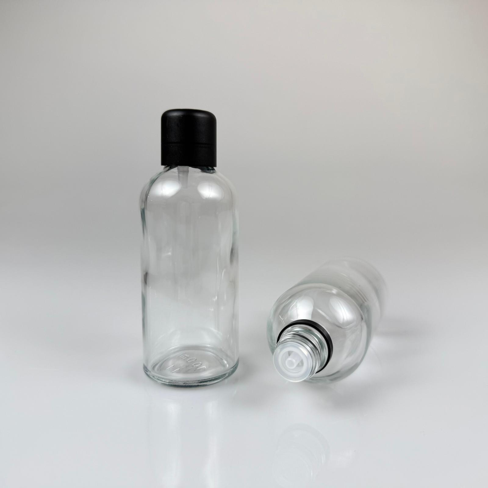100 CC ŞEFFAF İÇTEN DAMLALIKLI - SİYAH KİLİT KAPAKLI CAM ŞİŞE - 100 ML SAYDAM YENİ İÇTEN DAMLALIKLI CAM ŞİŞE