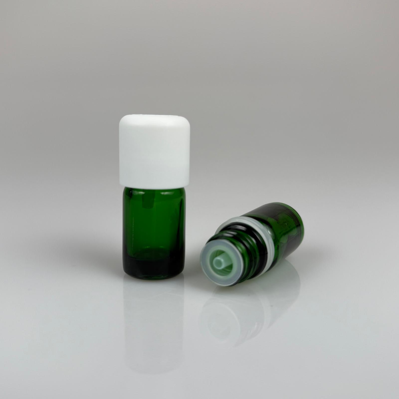 5 CC YEŞİL İÇTEN DAMLALIKLI (OPSİYONEL DAMLALIK) - BEYAZ KİLİTLİ KAPAKLI CAM ŞİŞE - 5 ML KOLONYA TIPALI CAM ŞİŞE