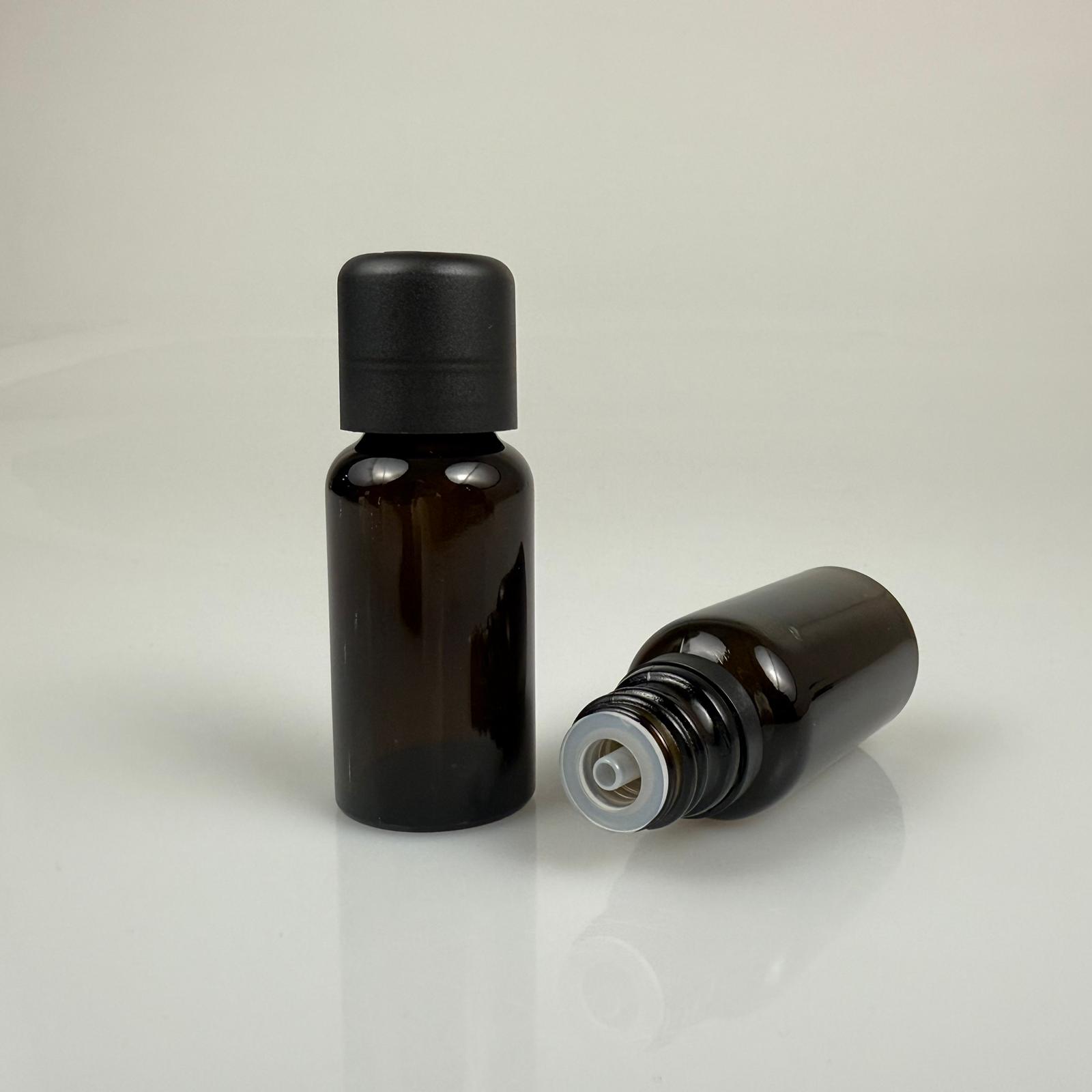 20 CC AMBER CAM ŞİŞE + İÇTEN DAMLALIKLI ÇOCUK KİLİTLİ SİYAH KAPAK - KAHVERENGİ 20 ML KİLİT KAPAKLI DAMLATMALI ŞİŞE