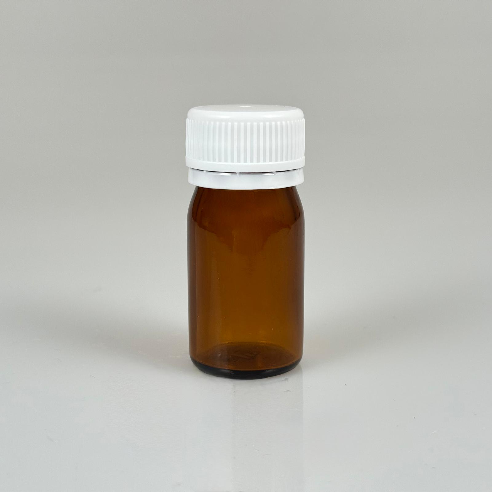 30 CC AMBER GENİŞ AĞIZLI CAM TABLET ŞİŞESİ - BEYAZ KİLİTLİ CONTALI KAPAKLI